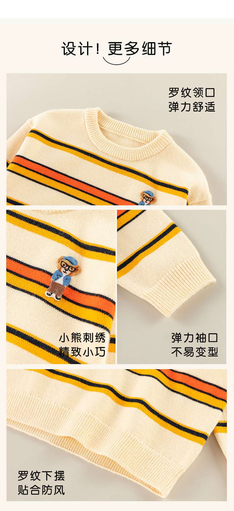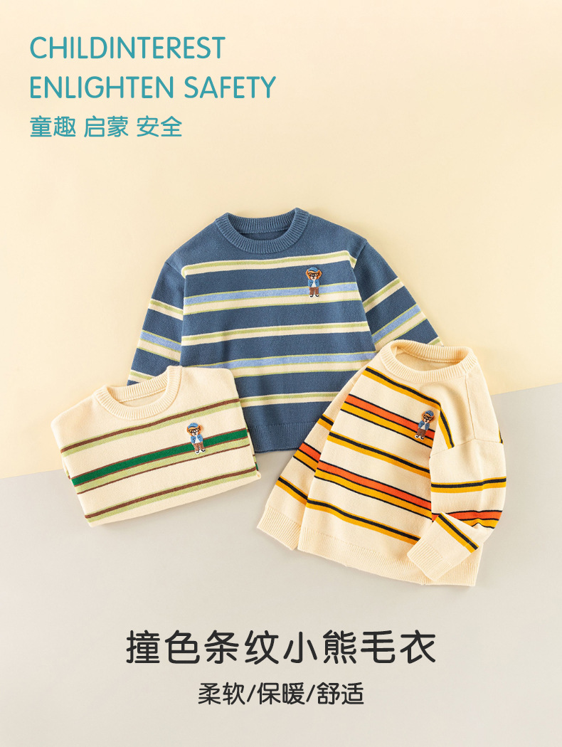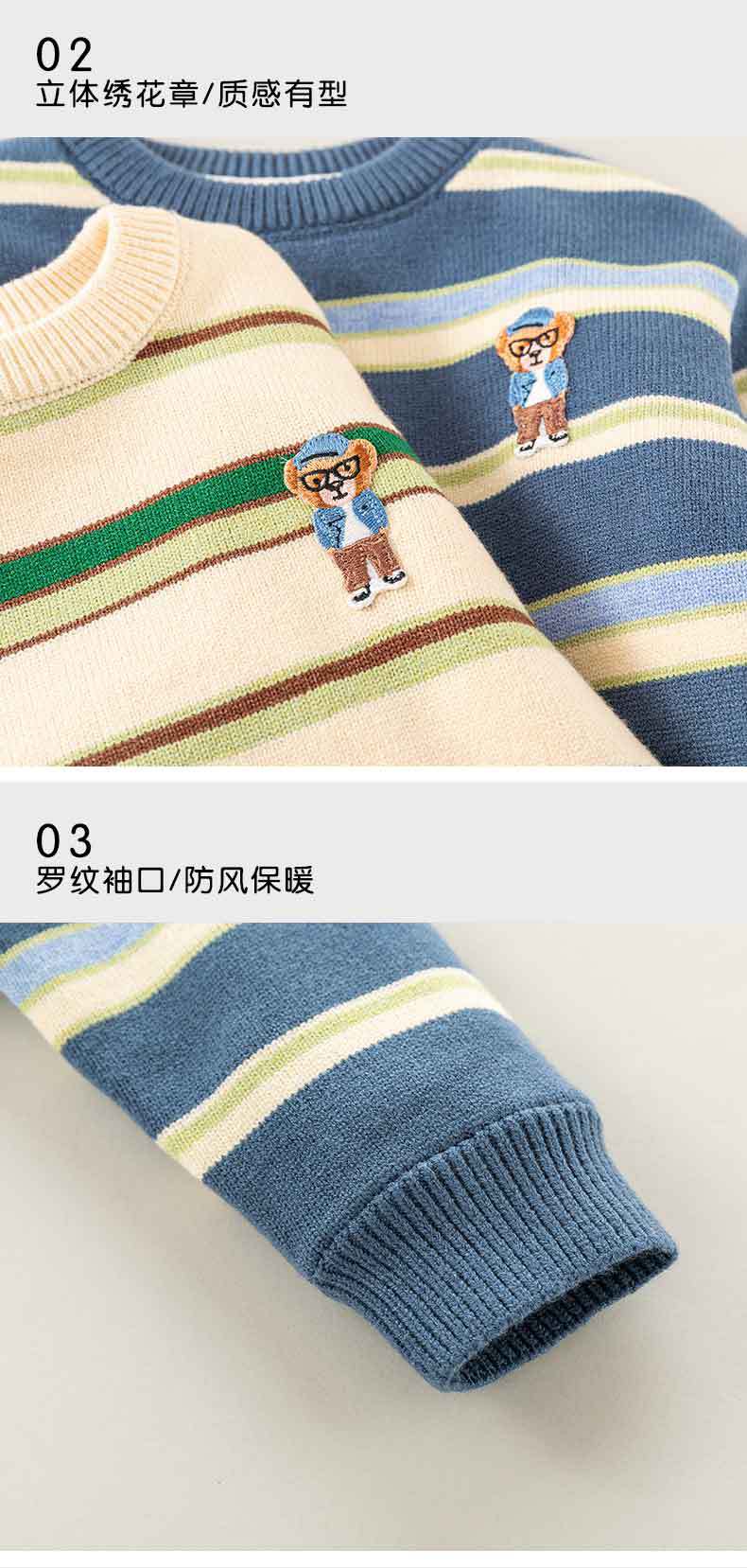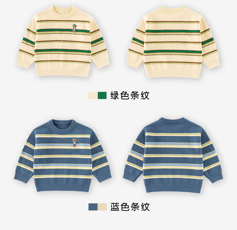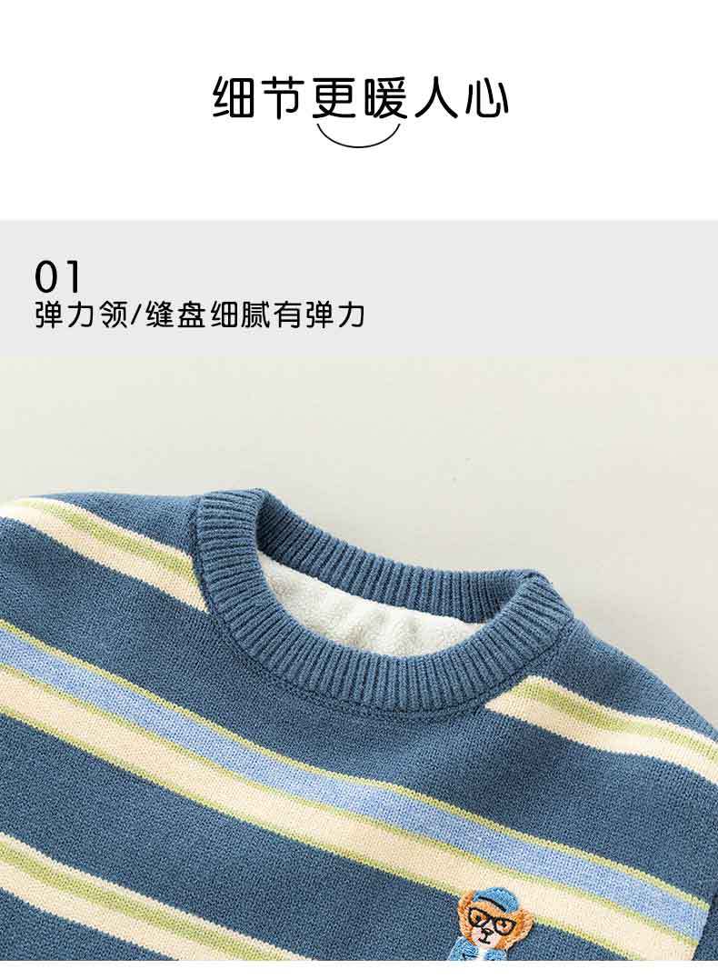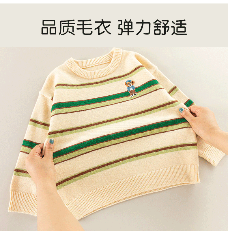 儿童毛衣冬季新款男童加厚条纹毛衫女宝保暖毛线衣冬装小童套头衫