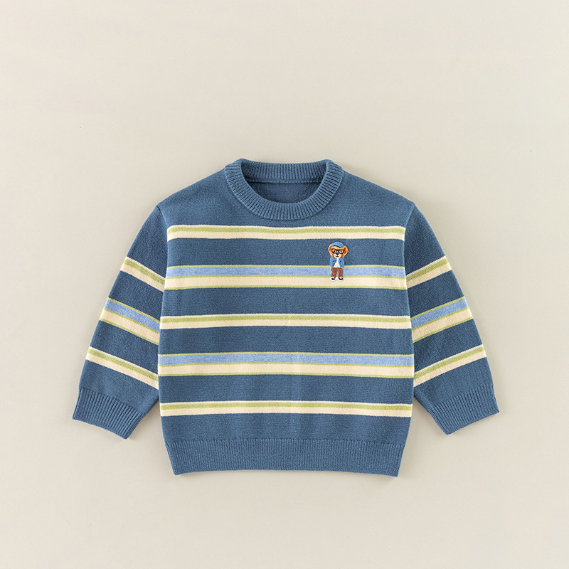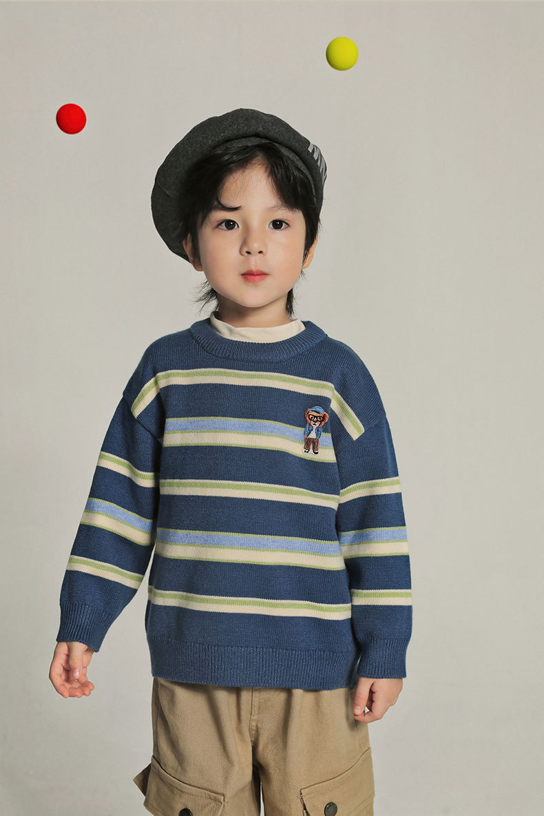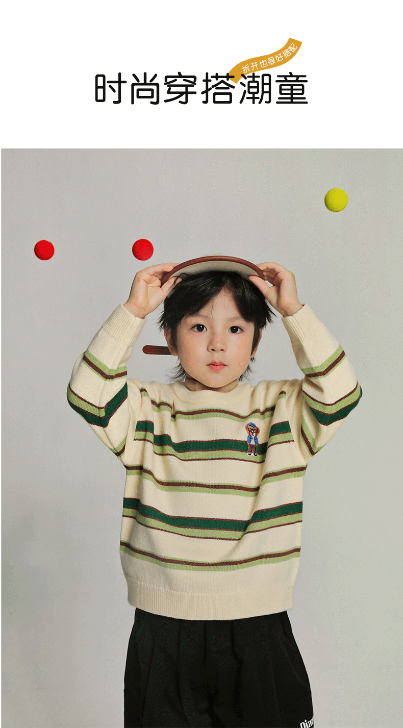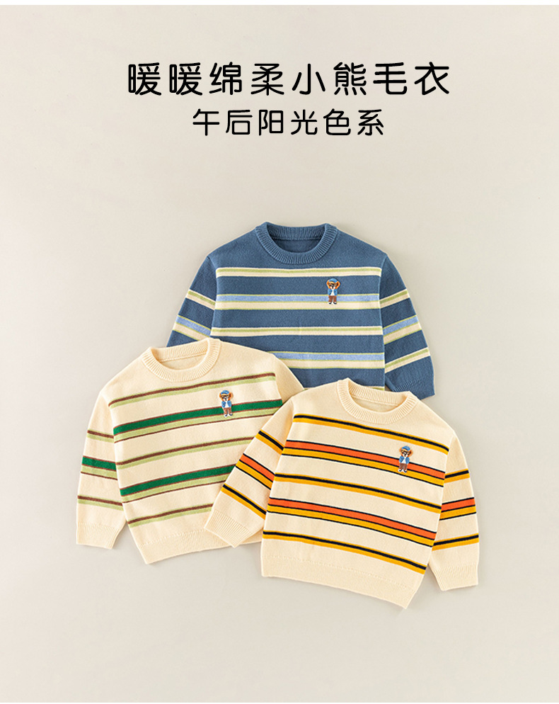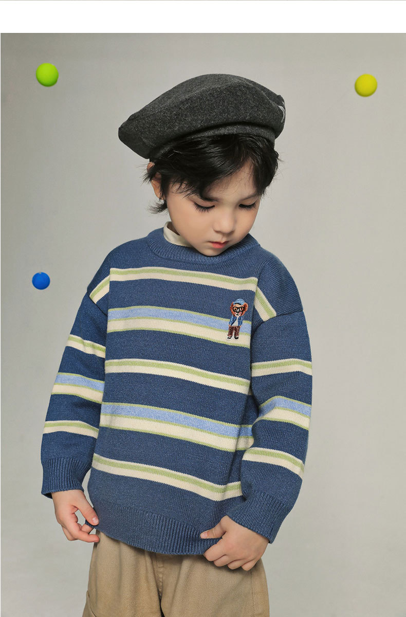 儿童毛衣冬季新款男童加厚条纹毛衫女宝保暖毛线衣冬装小童套头衫