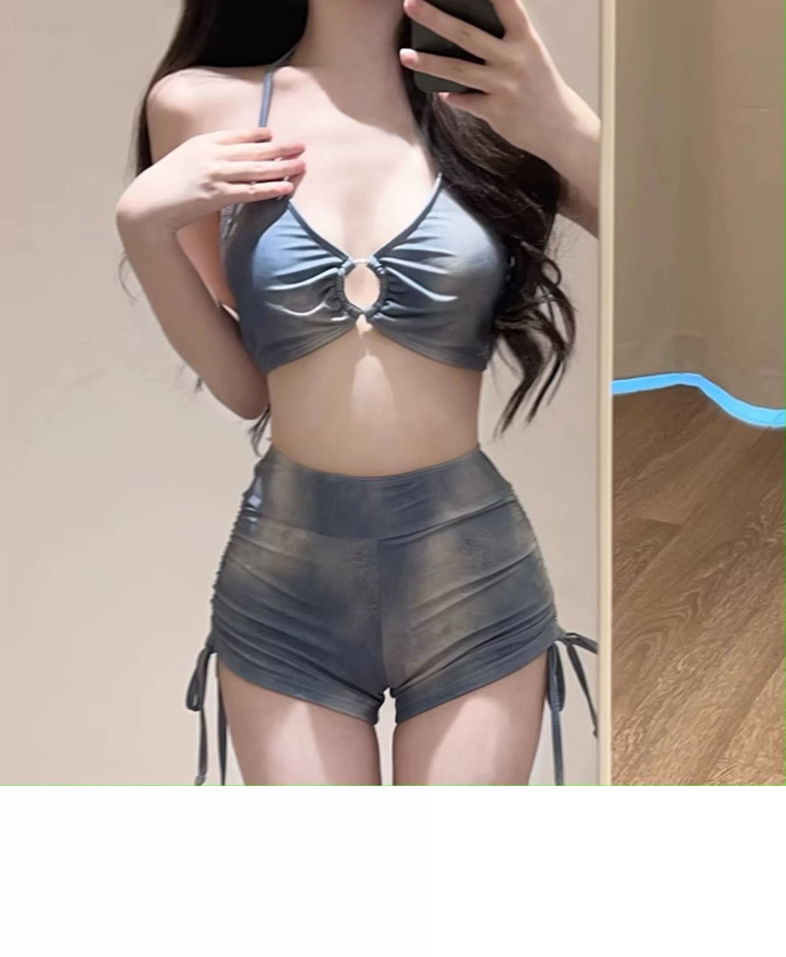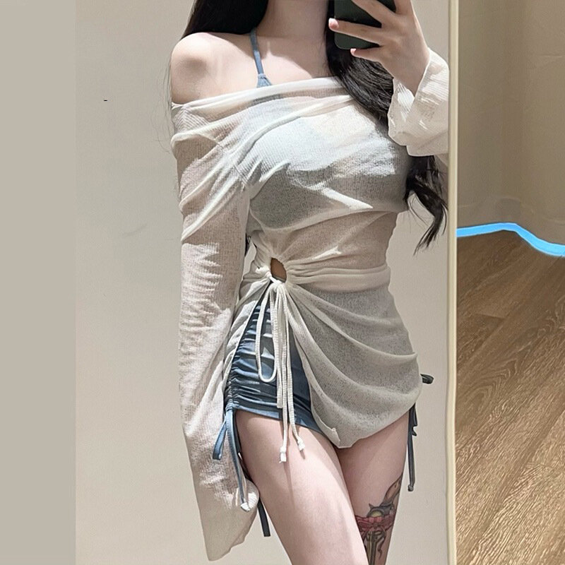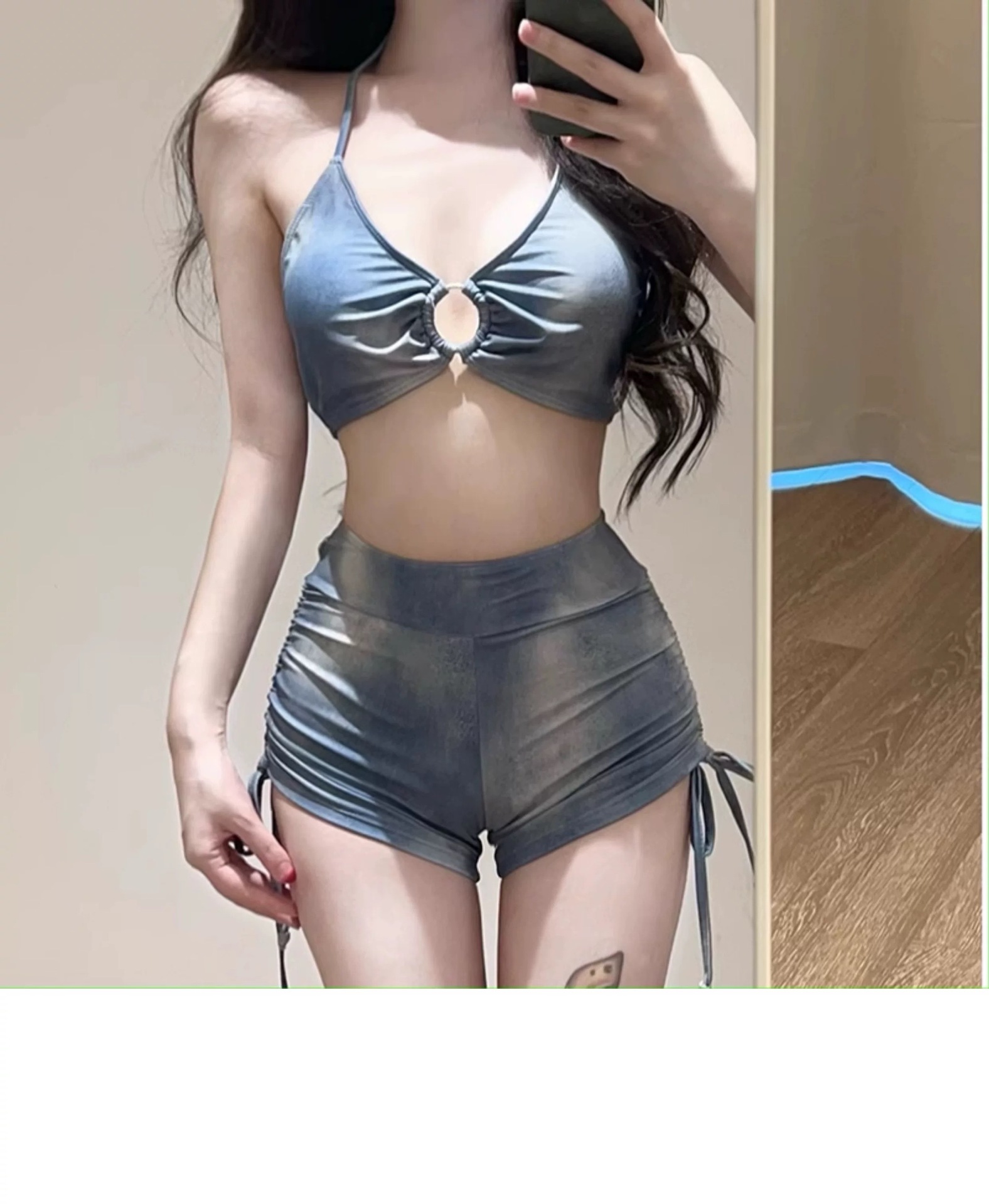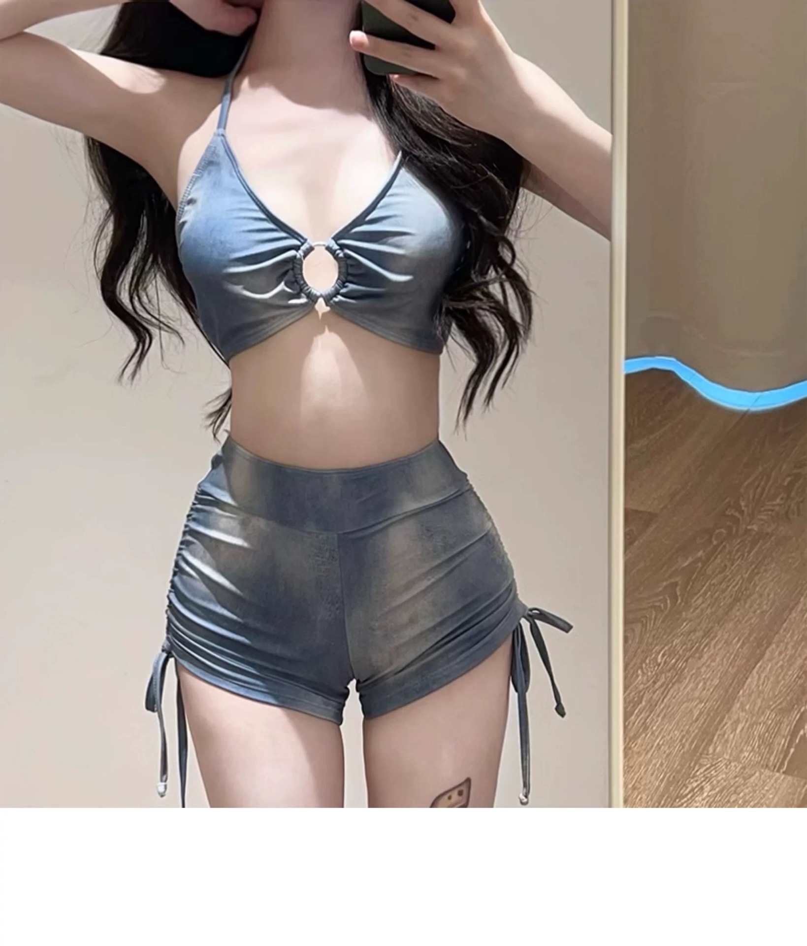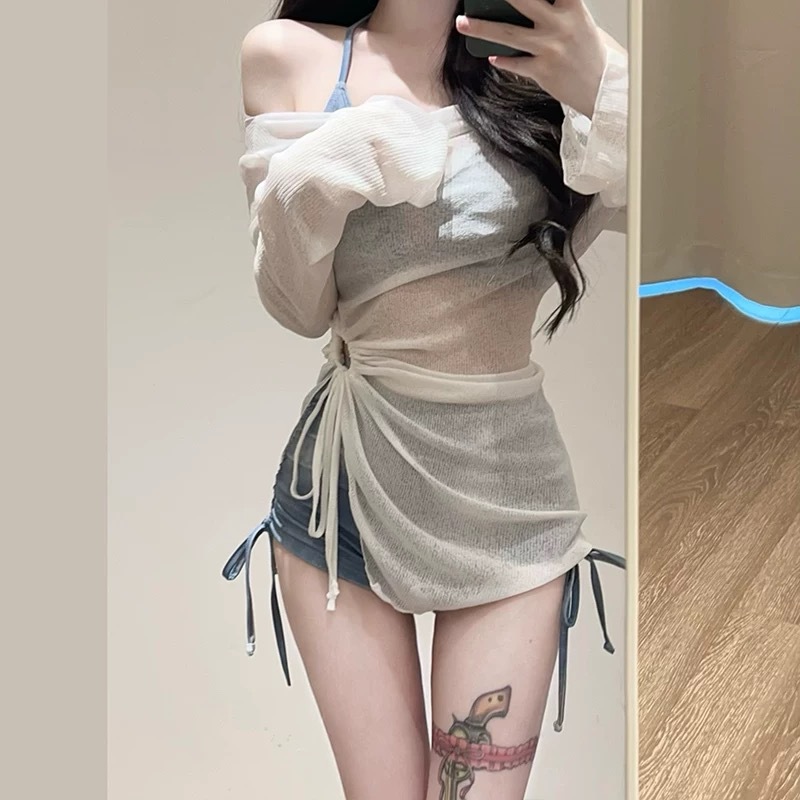 새로운 수영복 홀리데이 아메리칸 타이 염색 블루 3 피스 스포츠 스플릿 플랫 앵글 비키니 블라우스 온천 도매스토어 가기