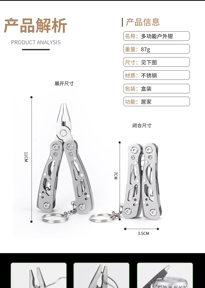 다기능 칼 펜치 스몰 사이즈 도구 펜치 모든 강철 접이식 펜치 키 체인 미니 야외 병 오프너 물 입 펜치스토어 가기