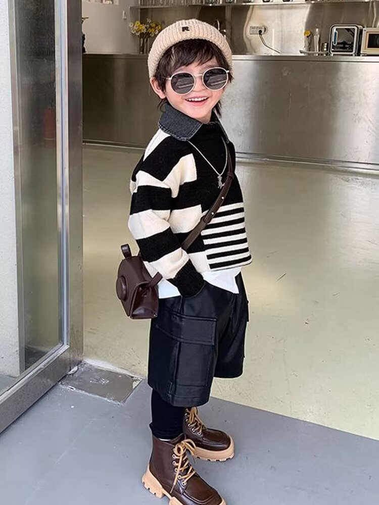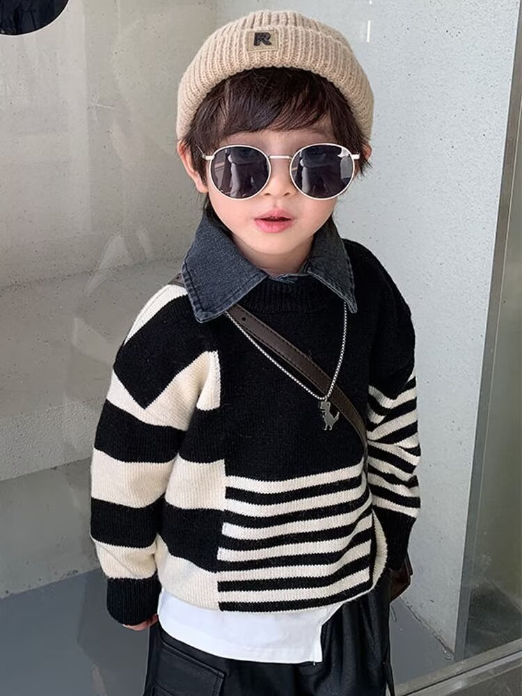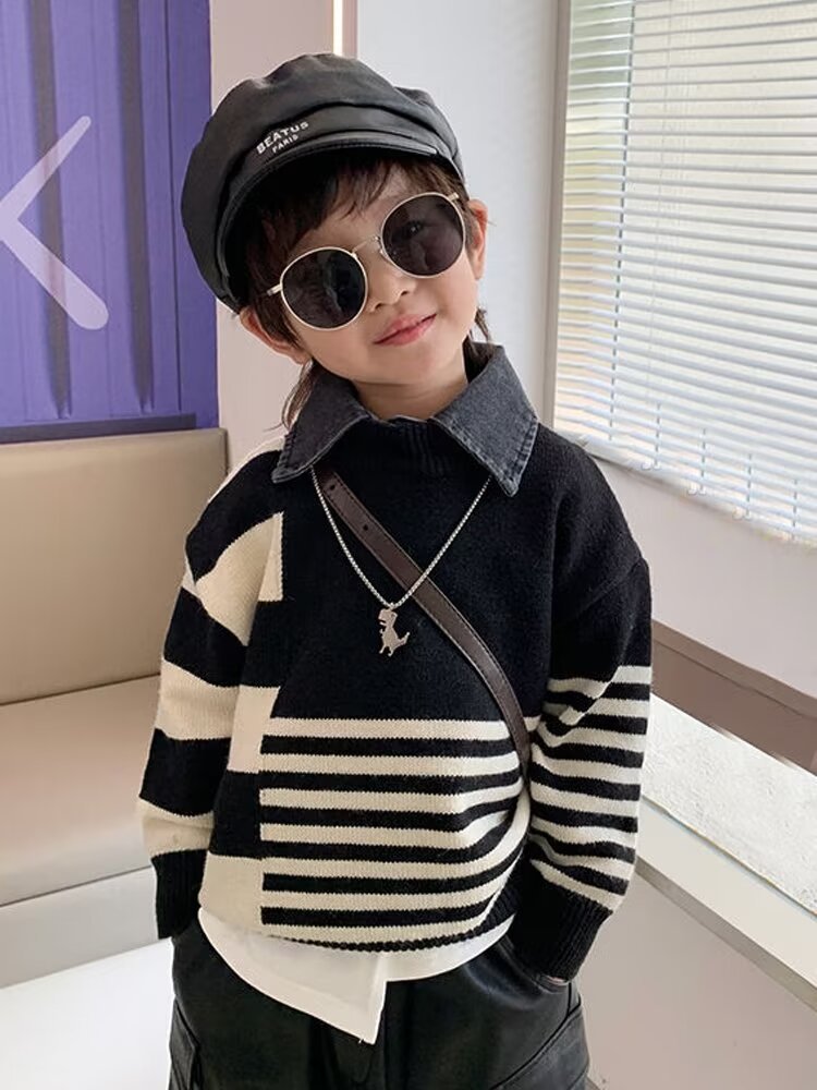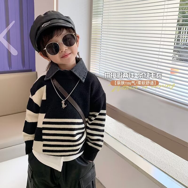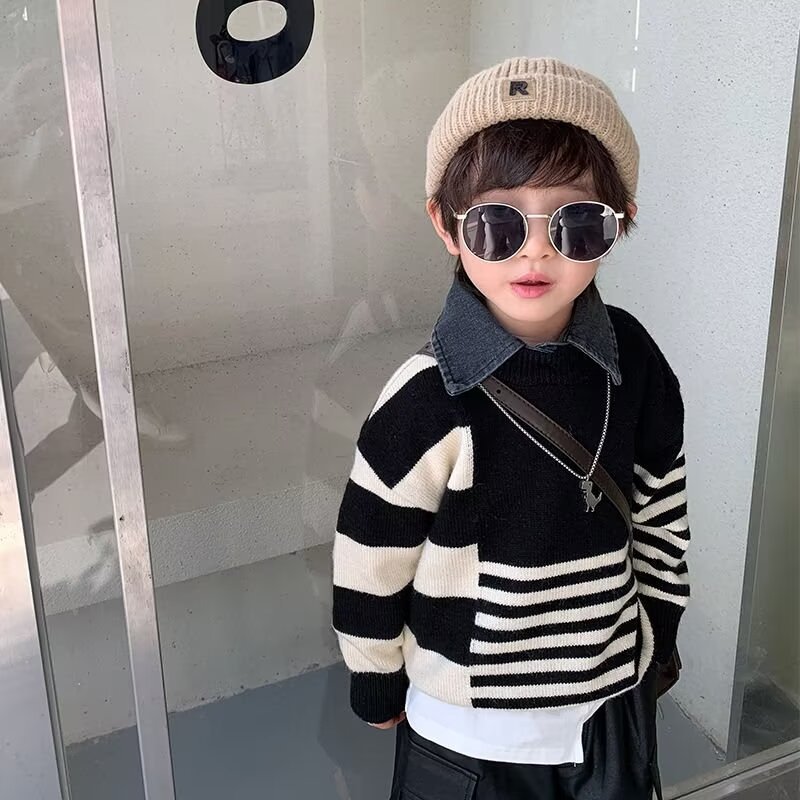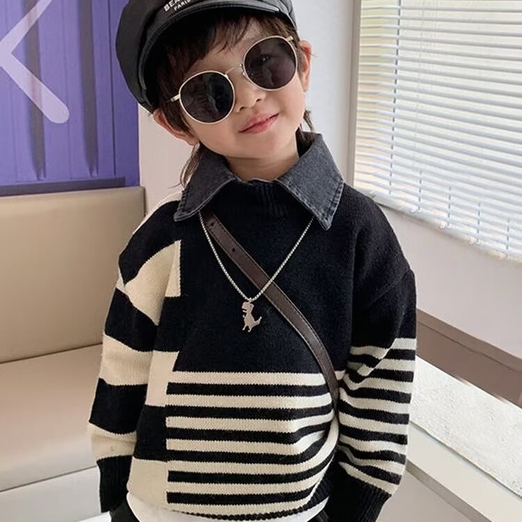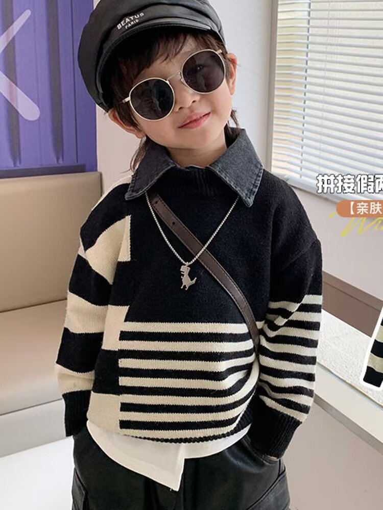 소년 스웨터 가을과 겨울 2024 새로운 어린이 기모 니트 셔츠 소년베이스 셔츠 아기 겨울 두꺼운 내부스토어 가기