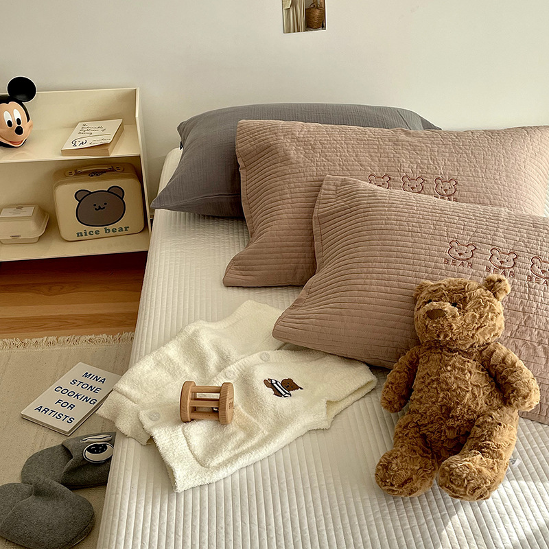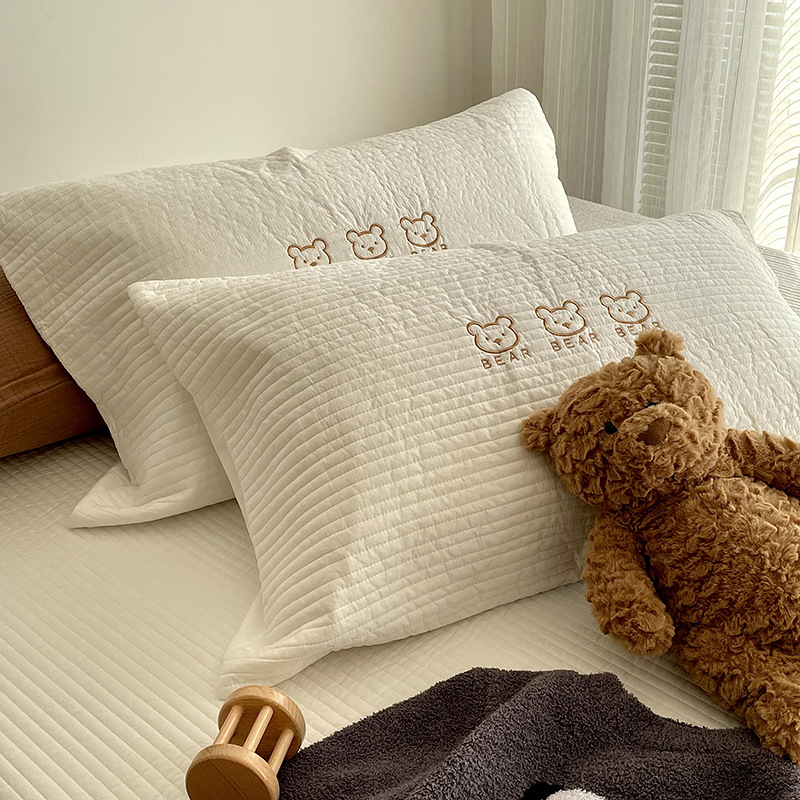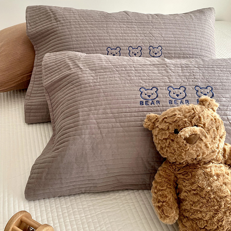 따뜻한 면화 퀼트 성인 베갯잇의 귀여운 곰 자수 싱글 어린이 베갯잇면