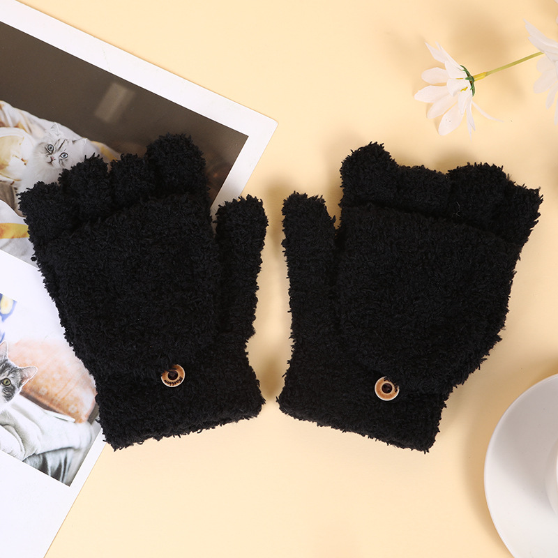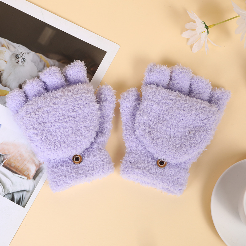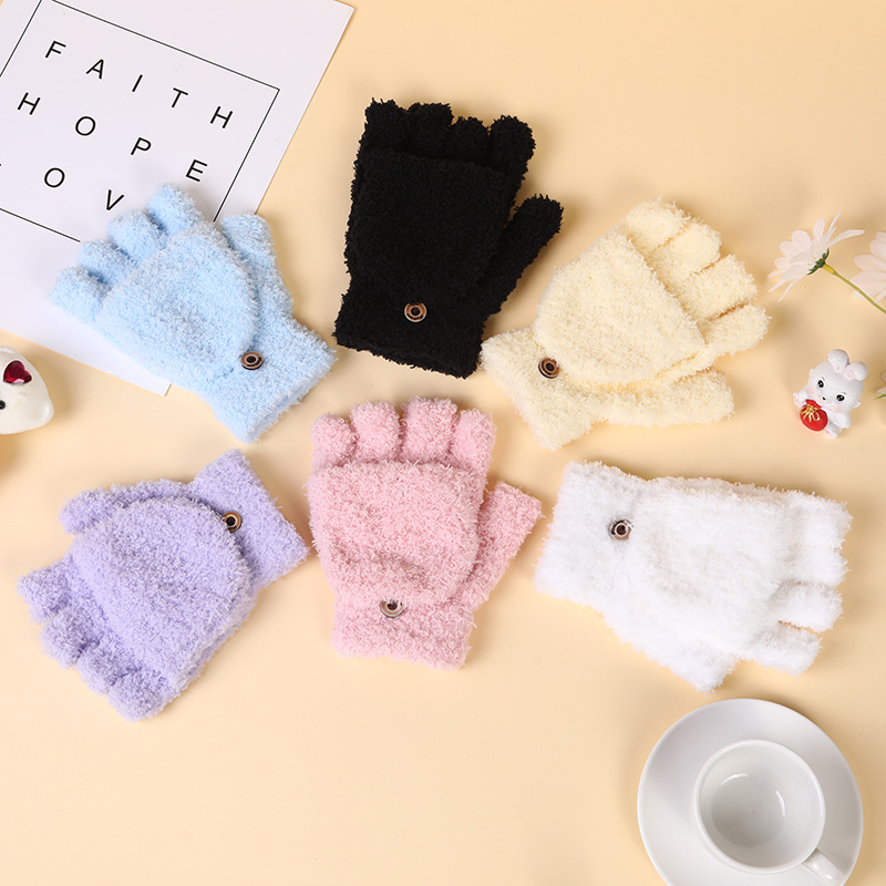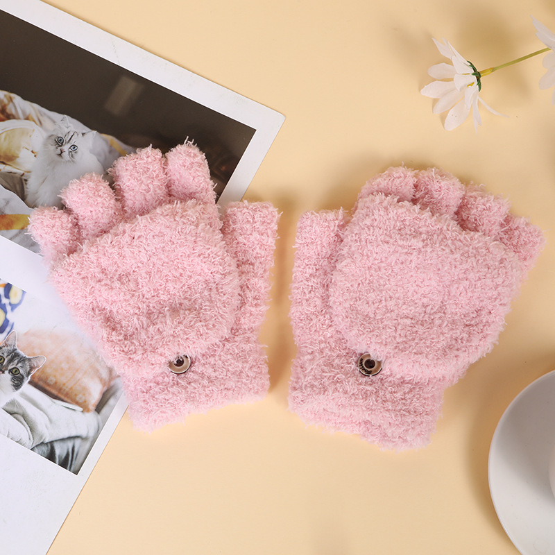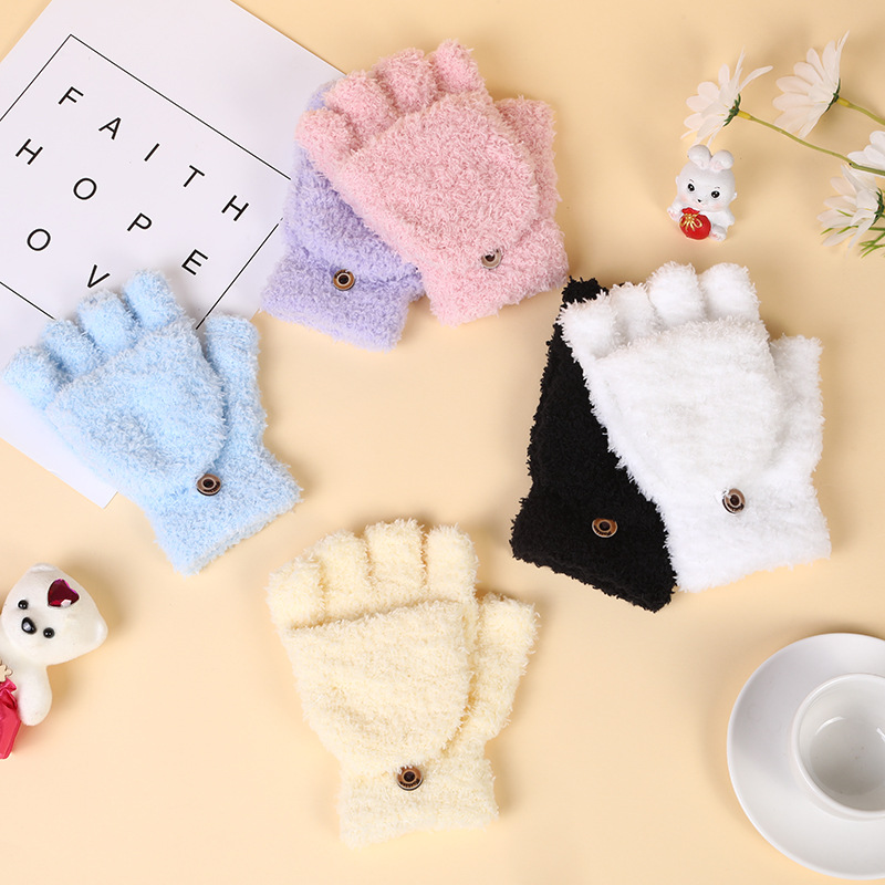 플립 장갑 산호 양털 여성용 냉간 단색 학생 반 손가락 쓰기 사이클링
