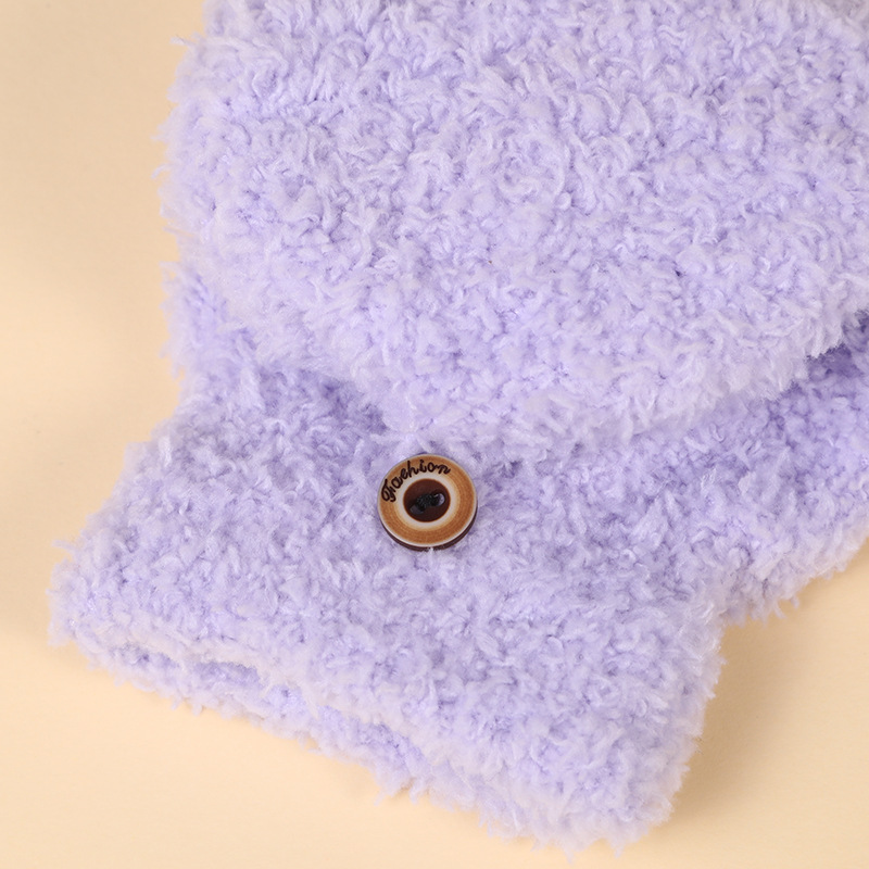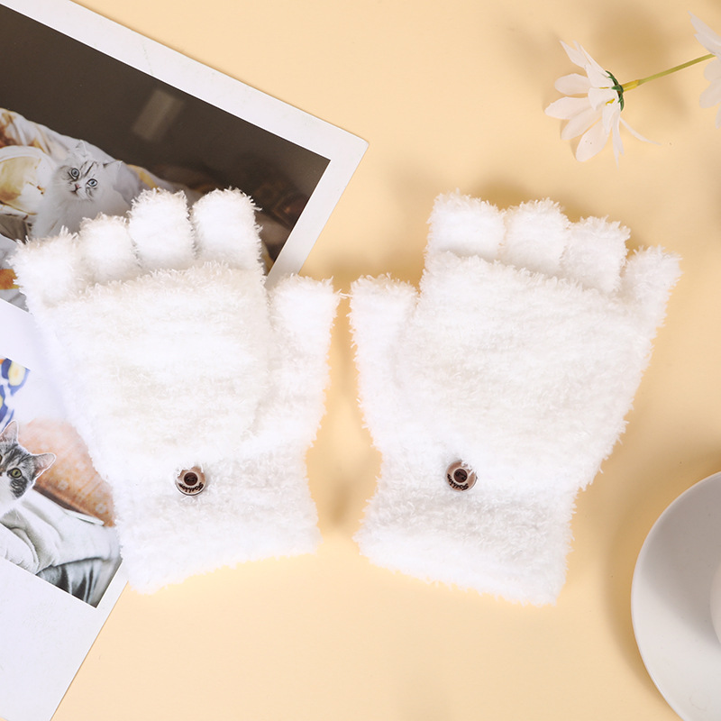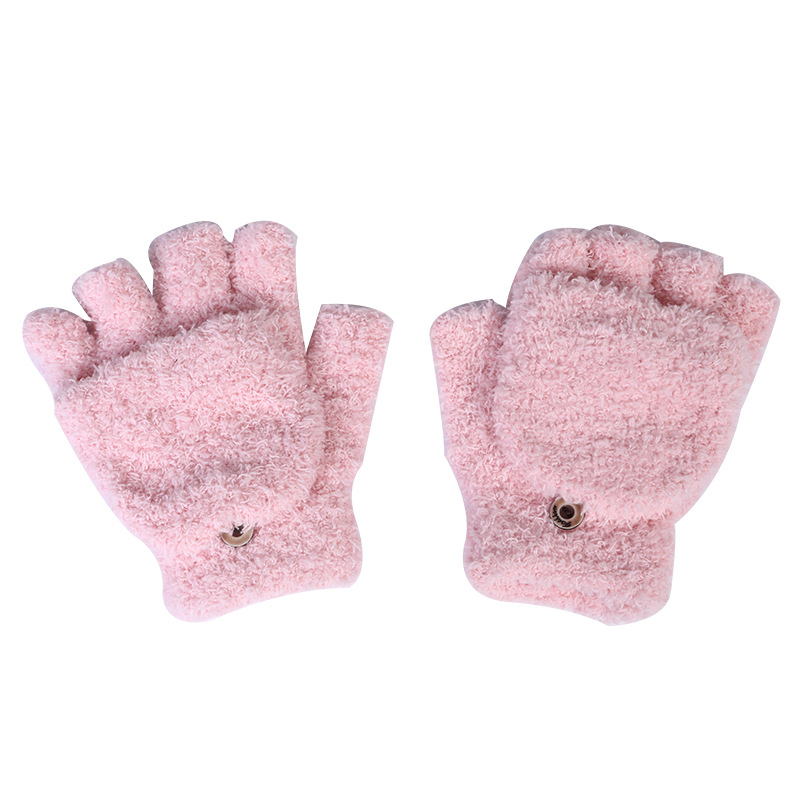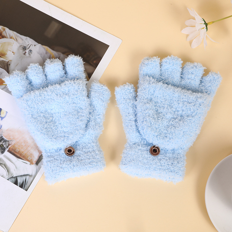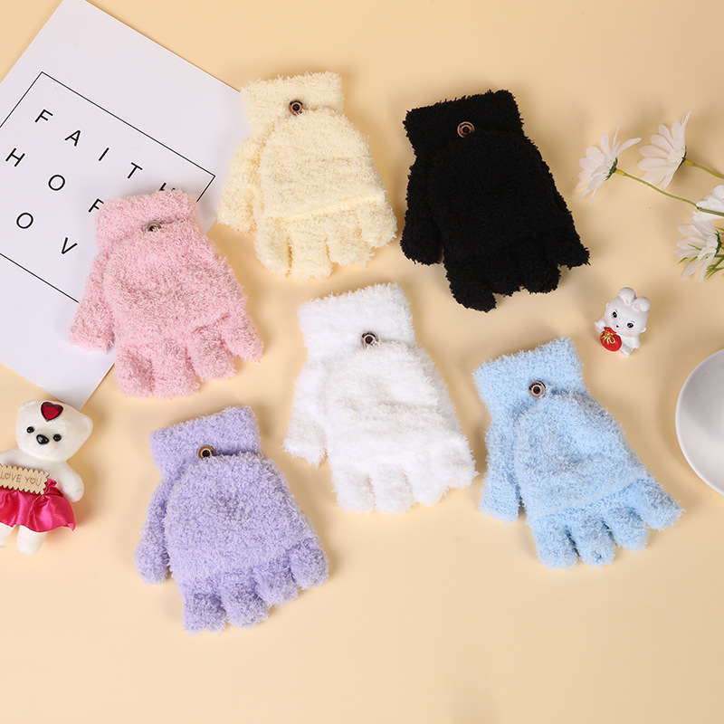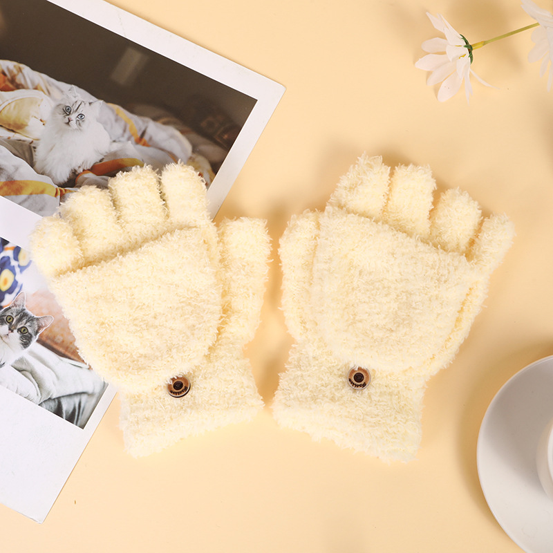 플립 장갑 산호 양털 여성용 냉간 단색 학생 반 손가락 쓰기 사이클링