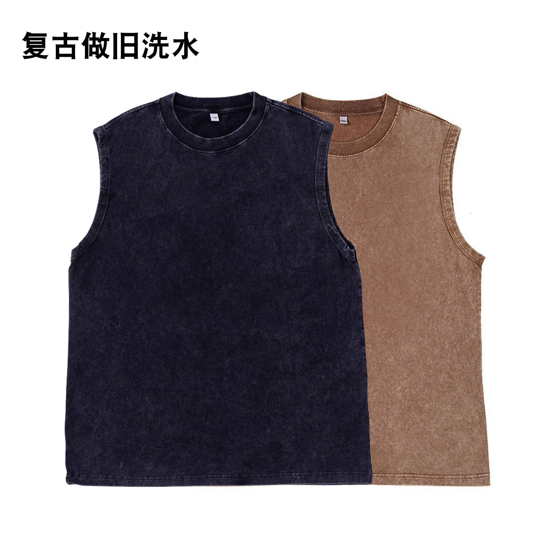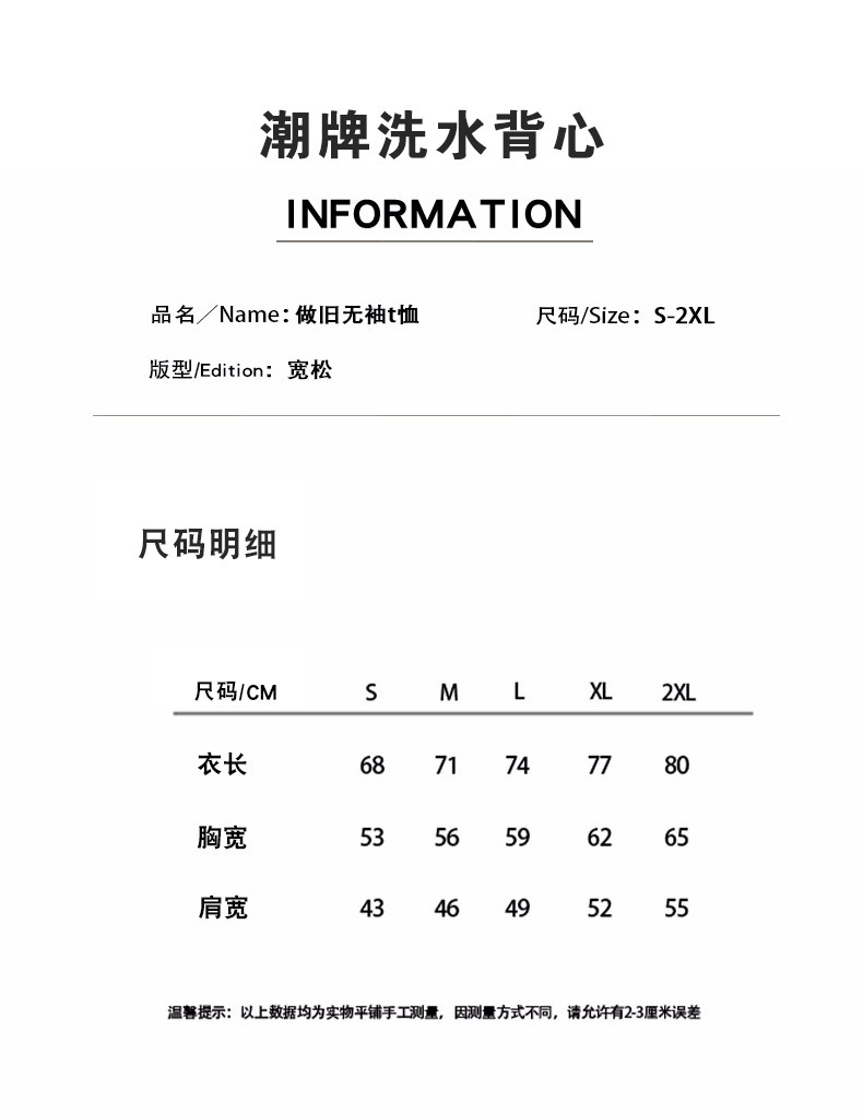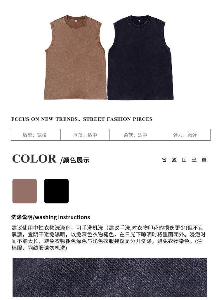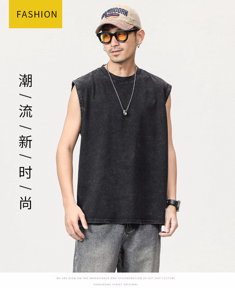 낡은 양복 조끼 남성 무거운 유럽과 미국의 복고풍 민소매 여름 조수 브랜드 순수한면 느슨한 튀긴 꽃 티셔츠스토어 가기