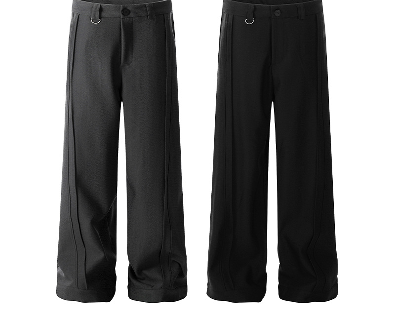 C831 아메리칸 트렌디 스트리트 레트로 유니섹스 루즈핏 스트레이트 디컨스트럭티드 플리츠 드레이프 디자인 남성 캐주얼 바지스토어 가기
