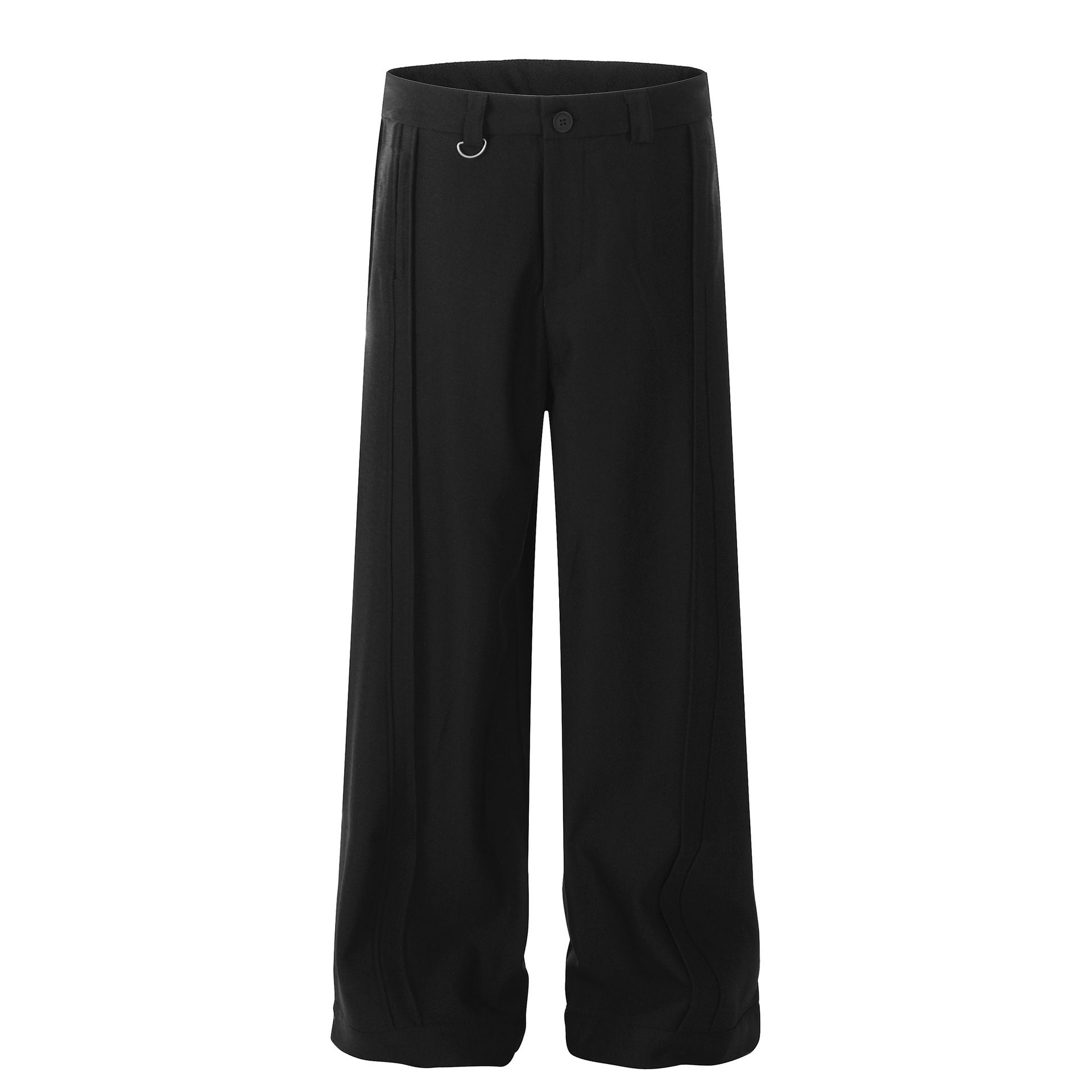 C831 아메리칸 트렌디 스트리트 레트로 유니섹스 루즈핏 스트레이트 디컨스트럭티드 플리츠 드레이프 디자인 남성 캐주얼 바지