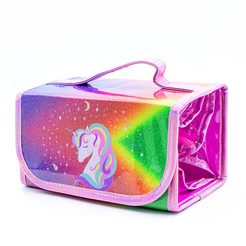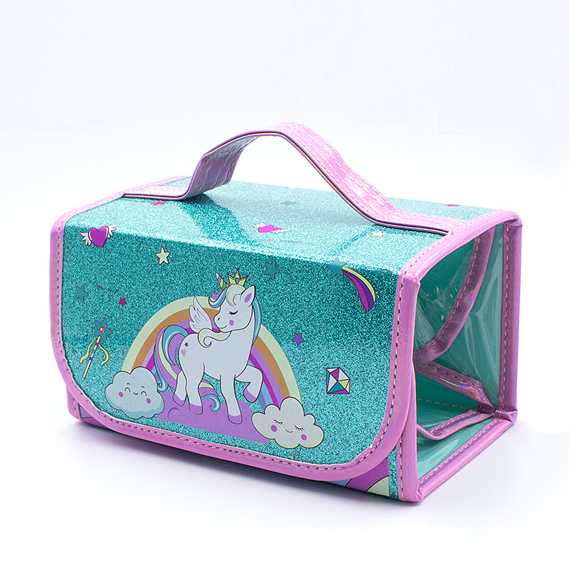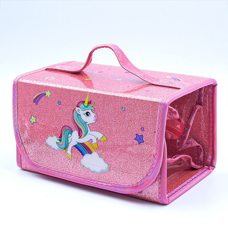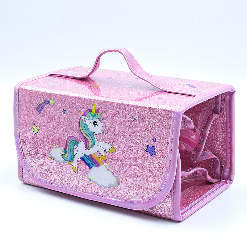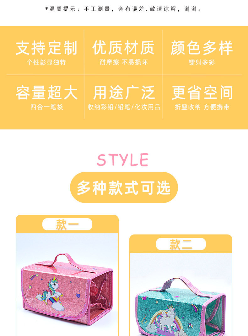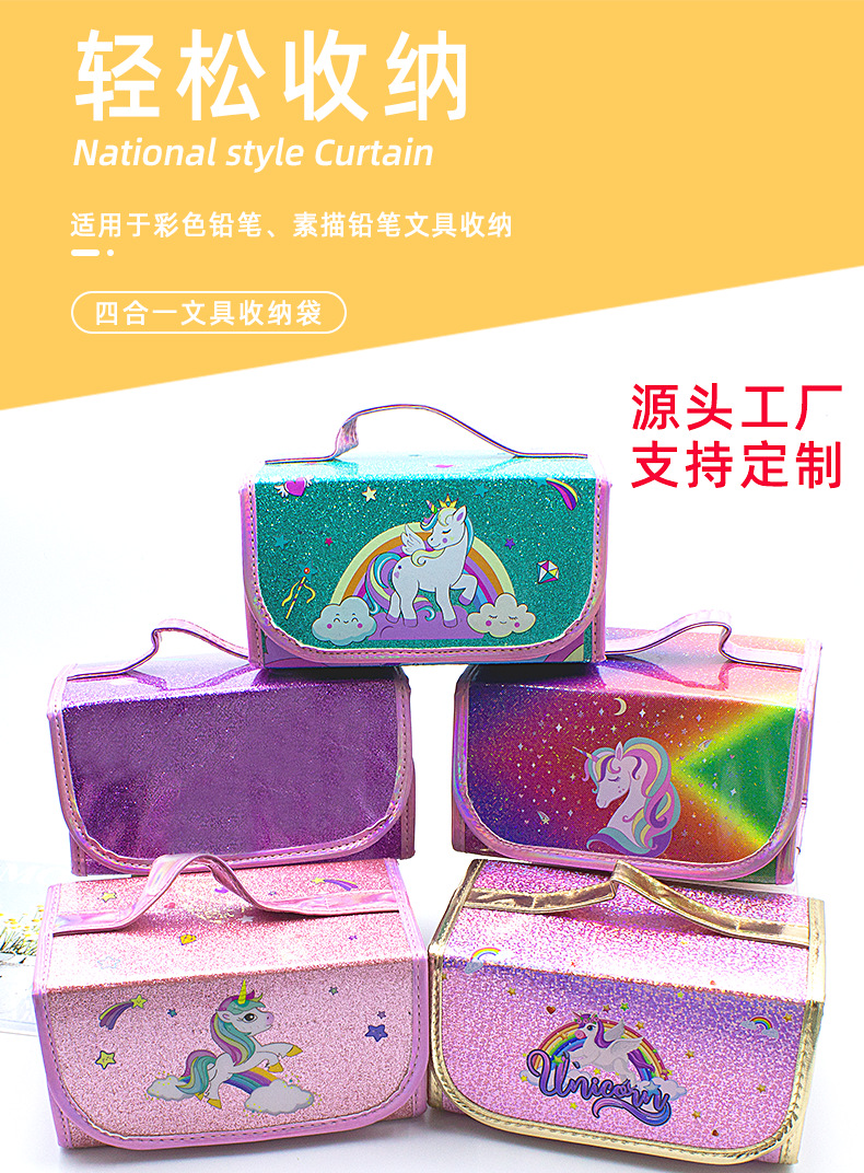 국경을 넘는 인기 상품 어린이 휴대용 접이식 4-in-1 유니콘 필통 대용량 PVC 방수 문구함