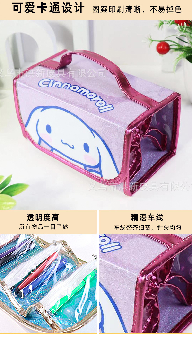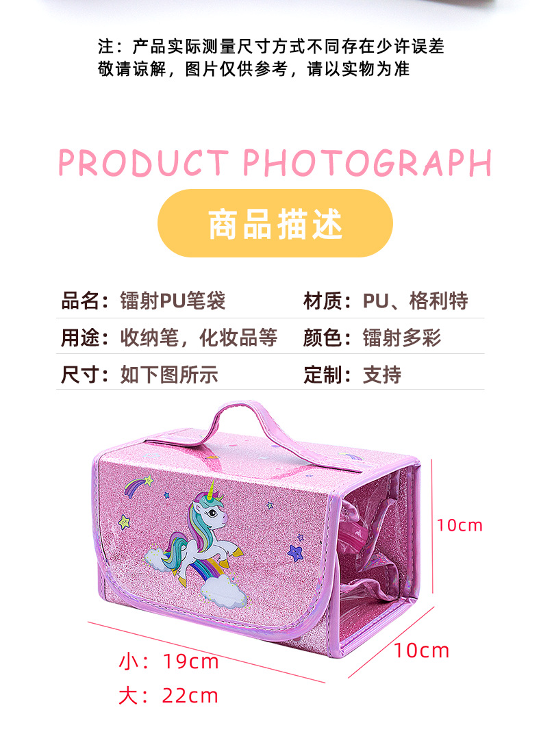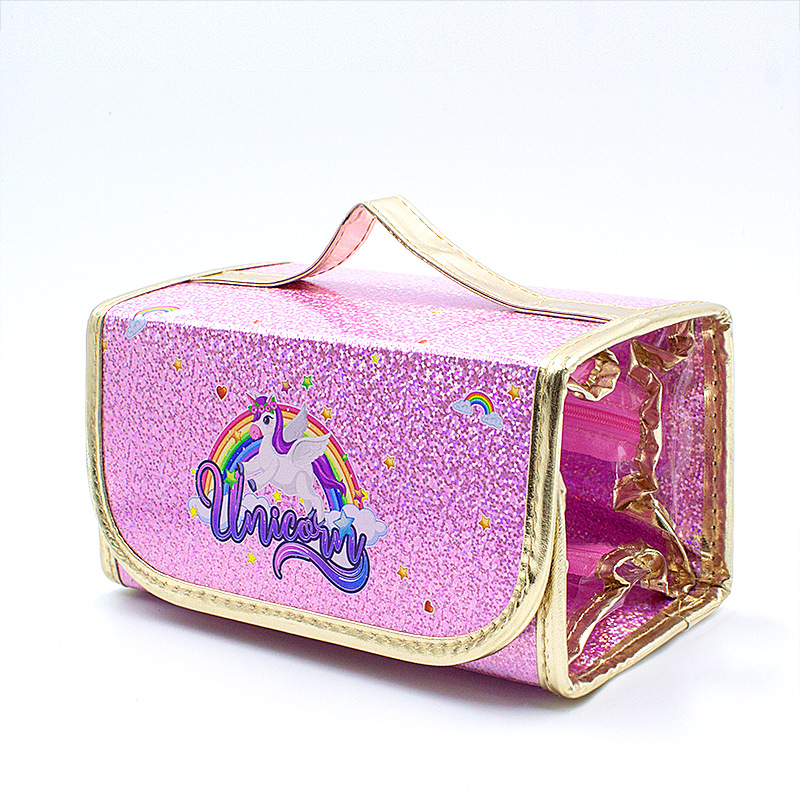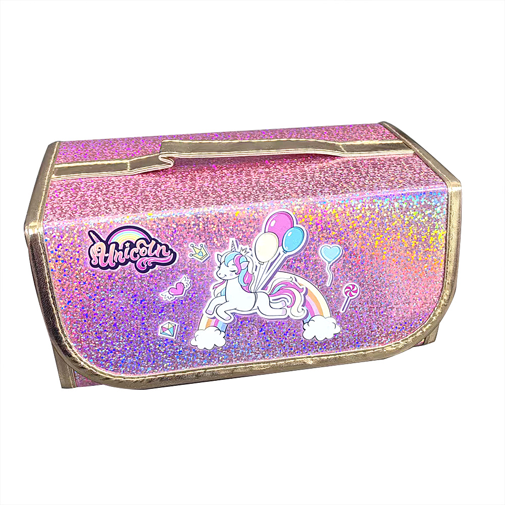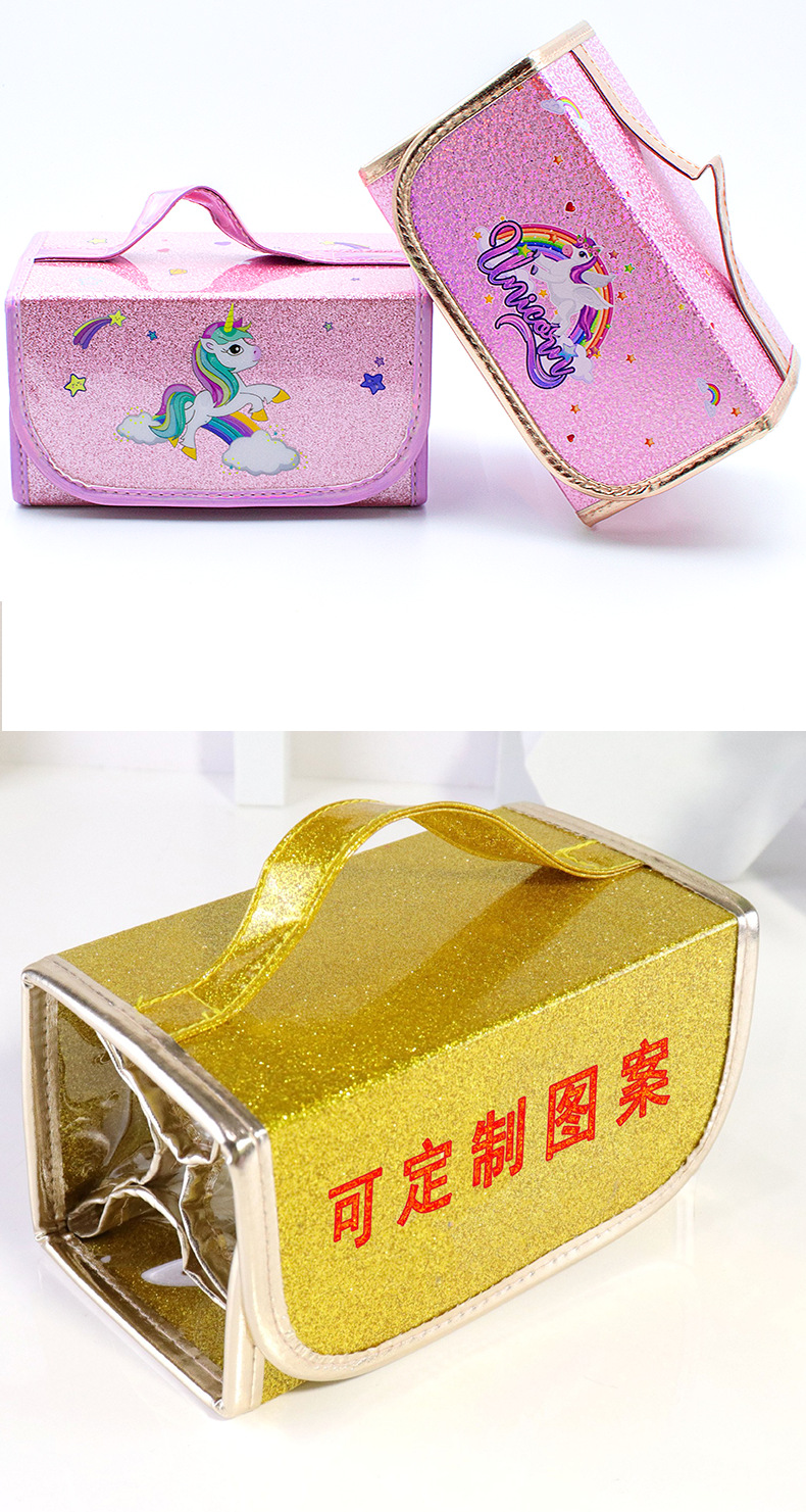 국경을 넘는 인기 상품 어린이 휴대용 접이식 4-in-1 유니콘 필통 대용량 PVC 방수 문구함