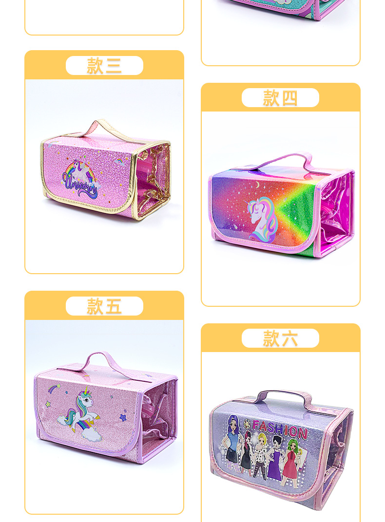 국경을 넘는 인기 상품 어린이 휴대용 접이식 4-in-1 유니콘 필통 대용량 PVC 방수 문구함스토어 가기
