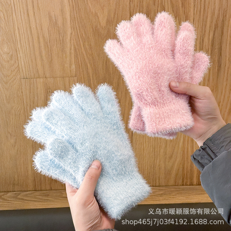 水貂毛纯色简约分指手套户外男女通用防风防寒保暖手套 厂家批发。弹性大,保暖性强,材质柔软不掉毛,适合成年男女佩戴。