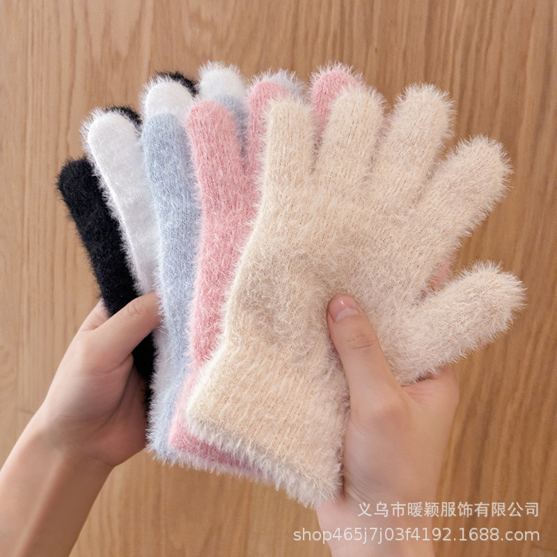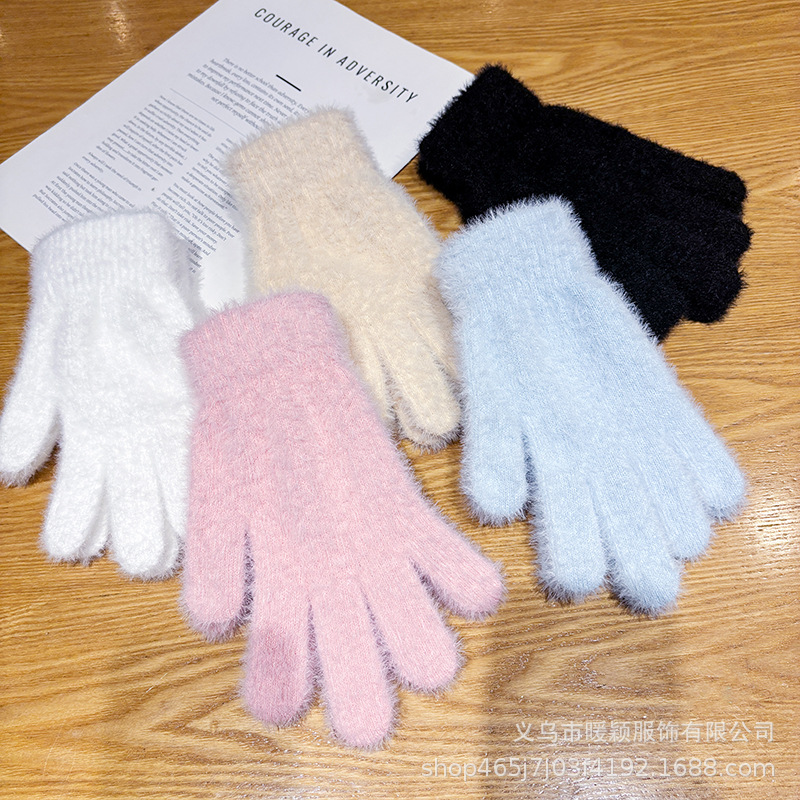 밍크 울 단색 간단한 손가락 장갑 야외 유니섹스 방풍 차가운 따뜻한 장갑 공장 도매스토어 가기