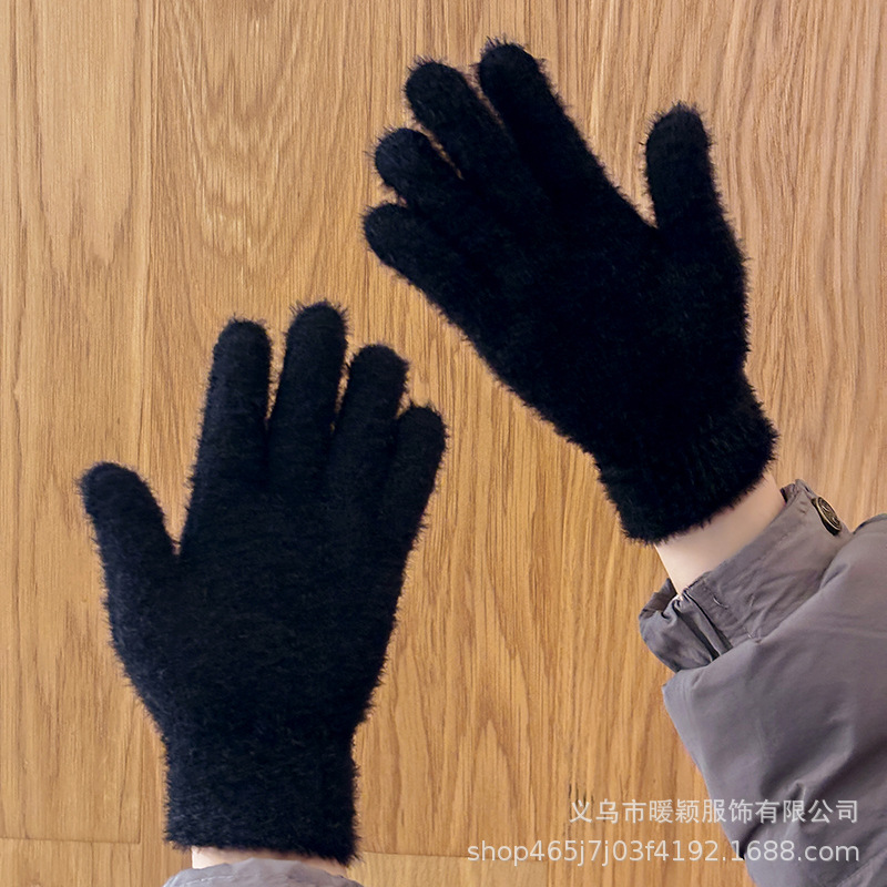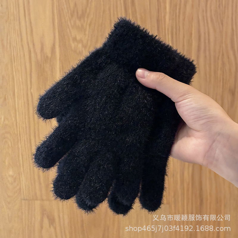 밍크 울 단색 간단한 손가락 장갑 야외 유니섹스 방풍 차가운 따뜻한 장갑 공장 도매