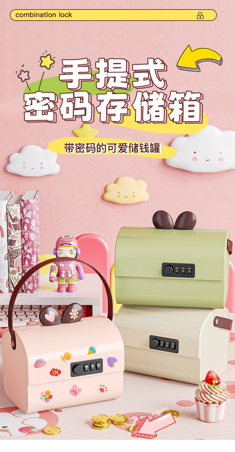 보관함, 비밀번호가 있는 어린이 만화 돼지 저금통, 대용량 개인 정보 보호 문서 보관함, 방진 보관함