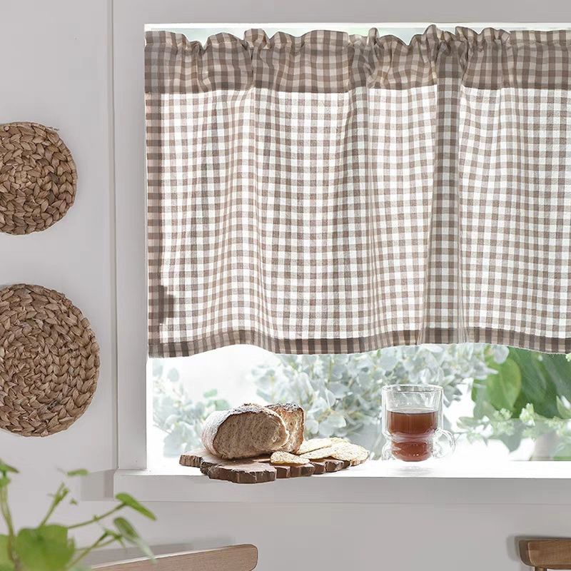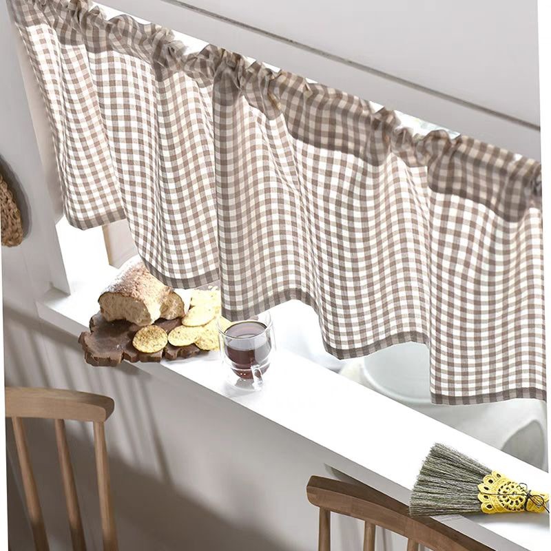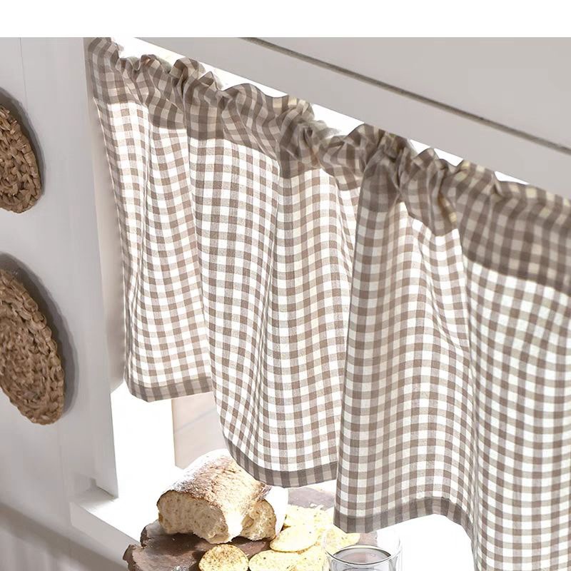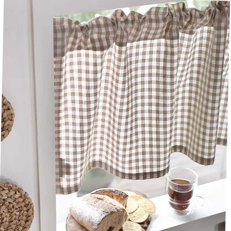 국경 간 격자 무늬 면 린넨 가벼운 격자 무늬 장식 절반 커튼 캐비닛 먼지 방 미운 커버링 커튼 커튼 매달려 커튼 펀치 프리