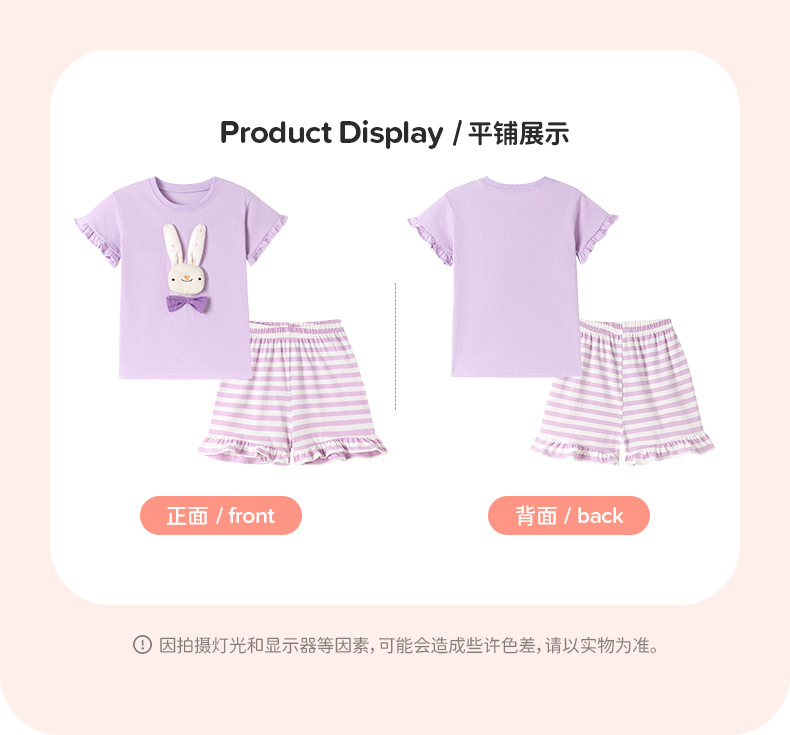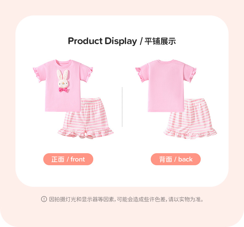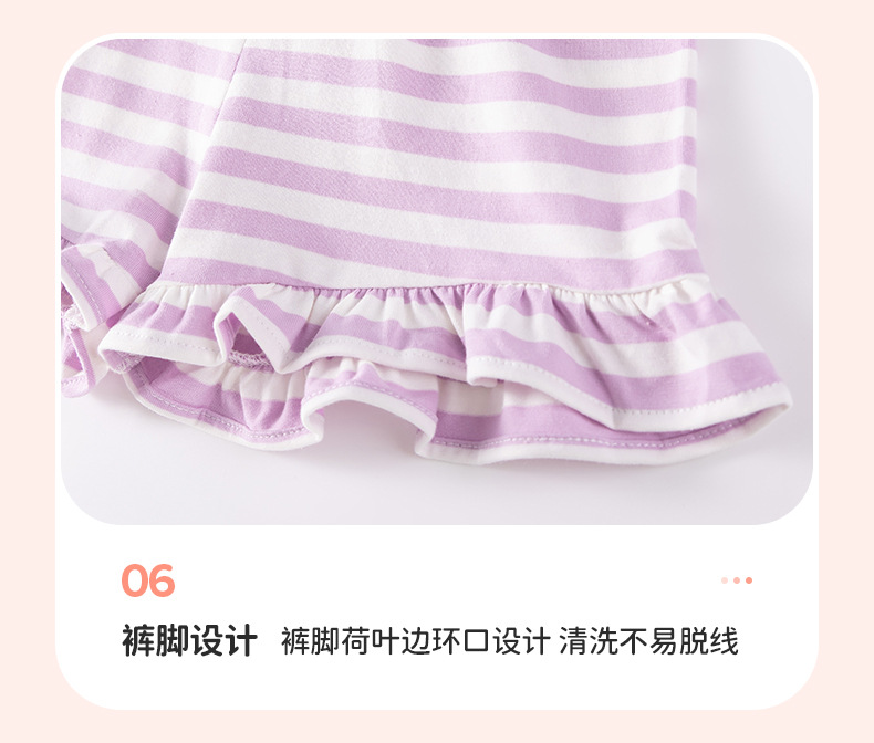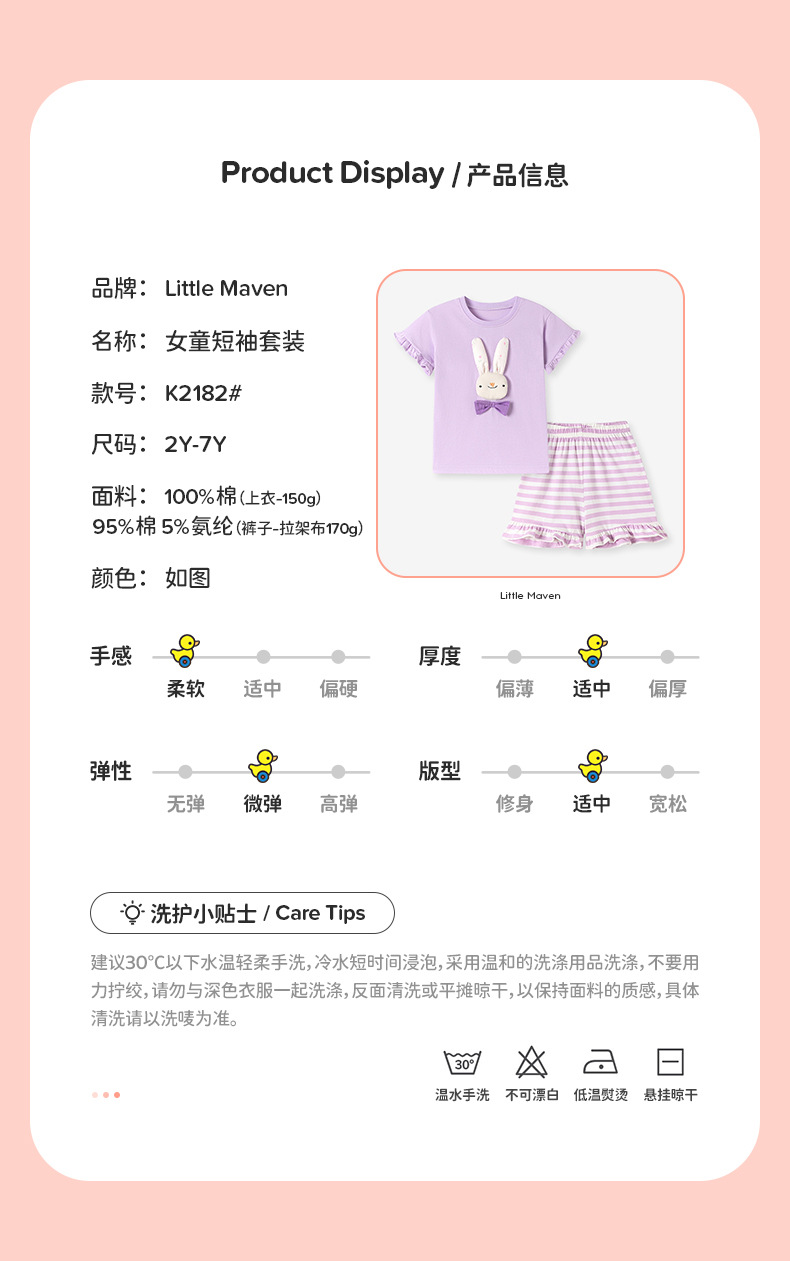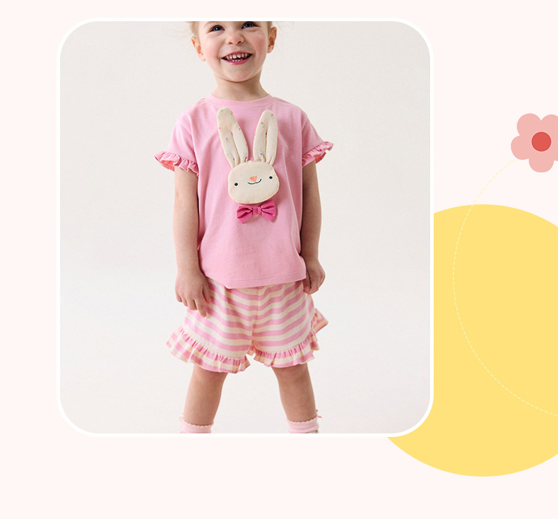 작은 maven 유럽과 미국의 귀여운 어린이 세트 여름 짧은 소매 소녀 세트 만화 줄무늬 아동복 도매스토어 가기