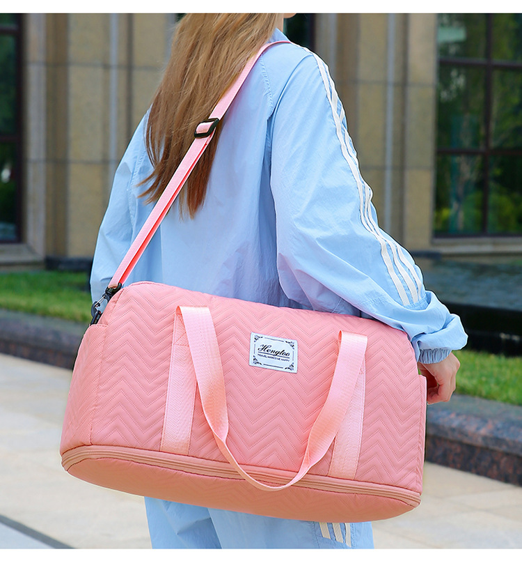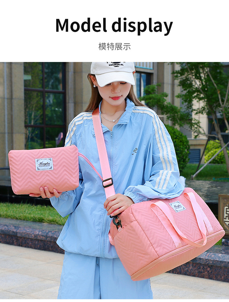 스토리지 커버 더플 백 유행 대용량 여행 가방 여성용 경량 접이식 단거리 여행 여행 습식 및 드라이 피트니스 가방