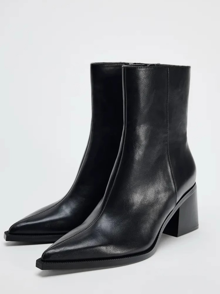ZA2025 가을 겨울 신상 영국 스타일 뾰족코 숏부츠 캐주얼 첼시부츠 편안한 사이드 지퍼 마틴부츠 굽이 두꺼운 여성용스토어 가기