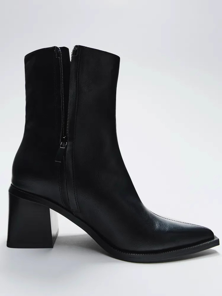 ZA2025 가을 겨울 신상 영국 스타일 뾰족코 숏부츠 캐주얼 첼시부츠 편안한 사이드 지퍼 마틴부츠 굽이 두꺼운 여성용