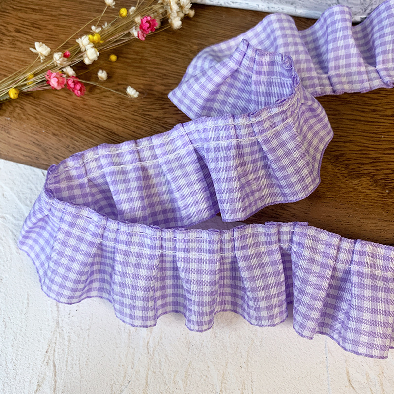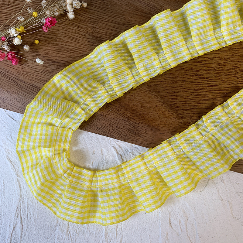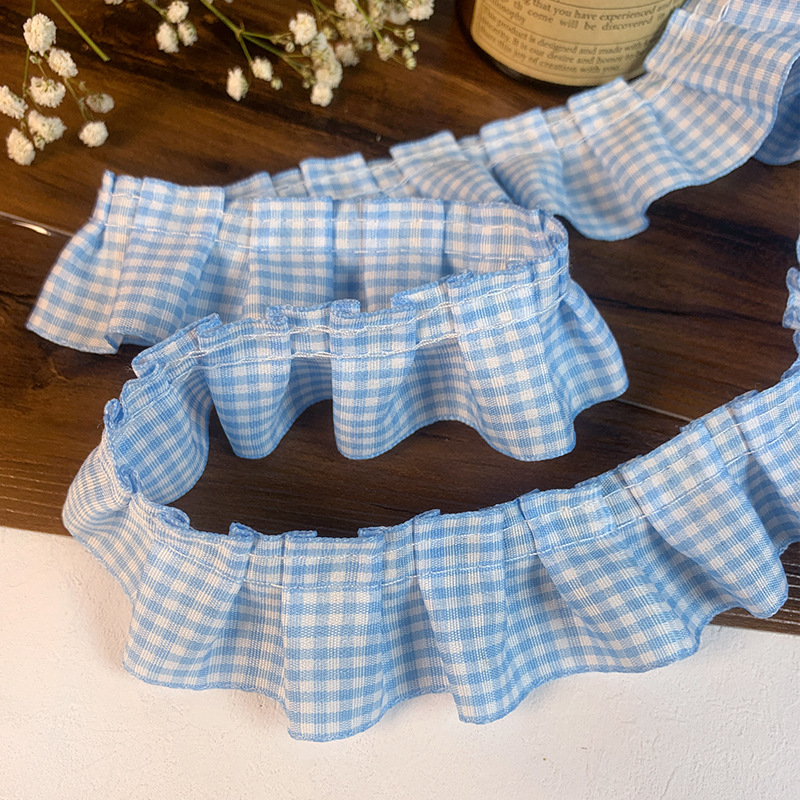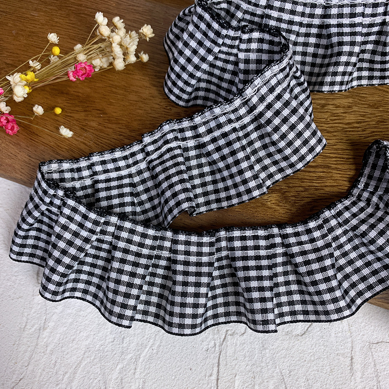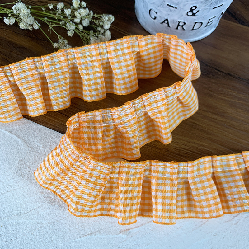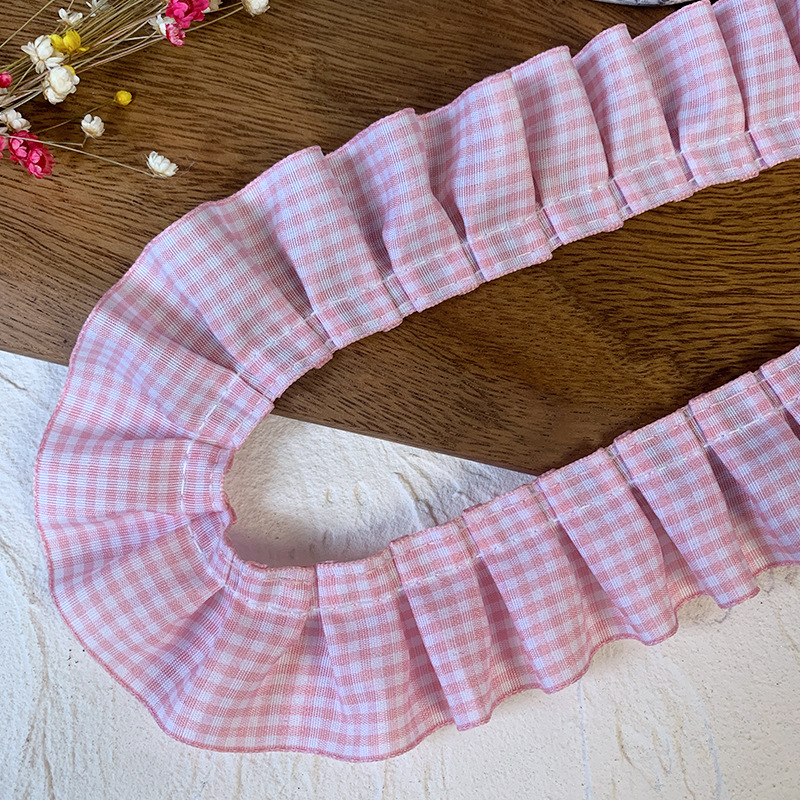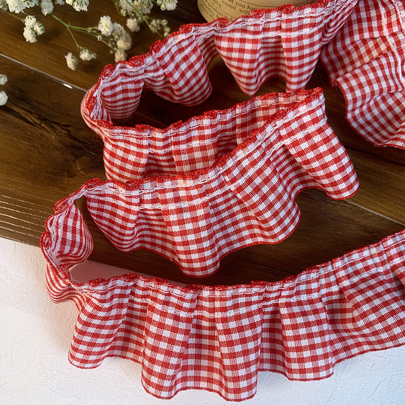 高档蕾丝花边辅料红格子荷叶花边diy裙边下摆袖口木