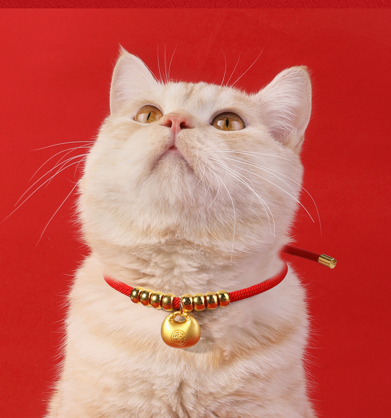 애완 동물 목걸이 통비 Fuyuan Bao 새해 금 구슬 조정 가능한 빨간 로프 후푸 가방 긴 수명 자물쇠 고양이 스카프 애완 동물 용품스토어 가기