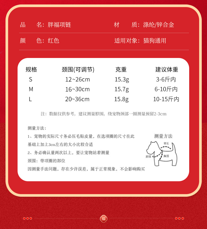애완 동물 목걸이 통비 Fuyuan Bao 새해 금 구슬 조정 가능한 빨간 로프 후푸 가방 긴 수명 자물쇠 고양이 스카프 애완 동물 용품