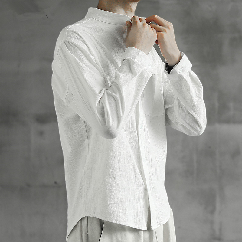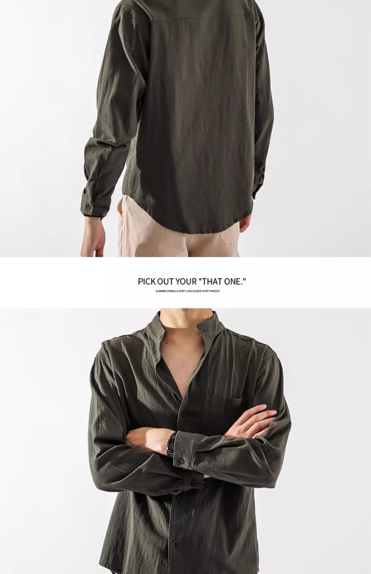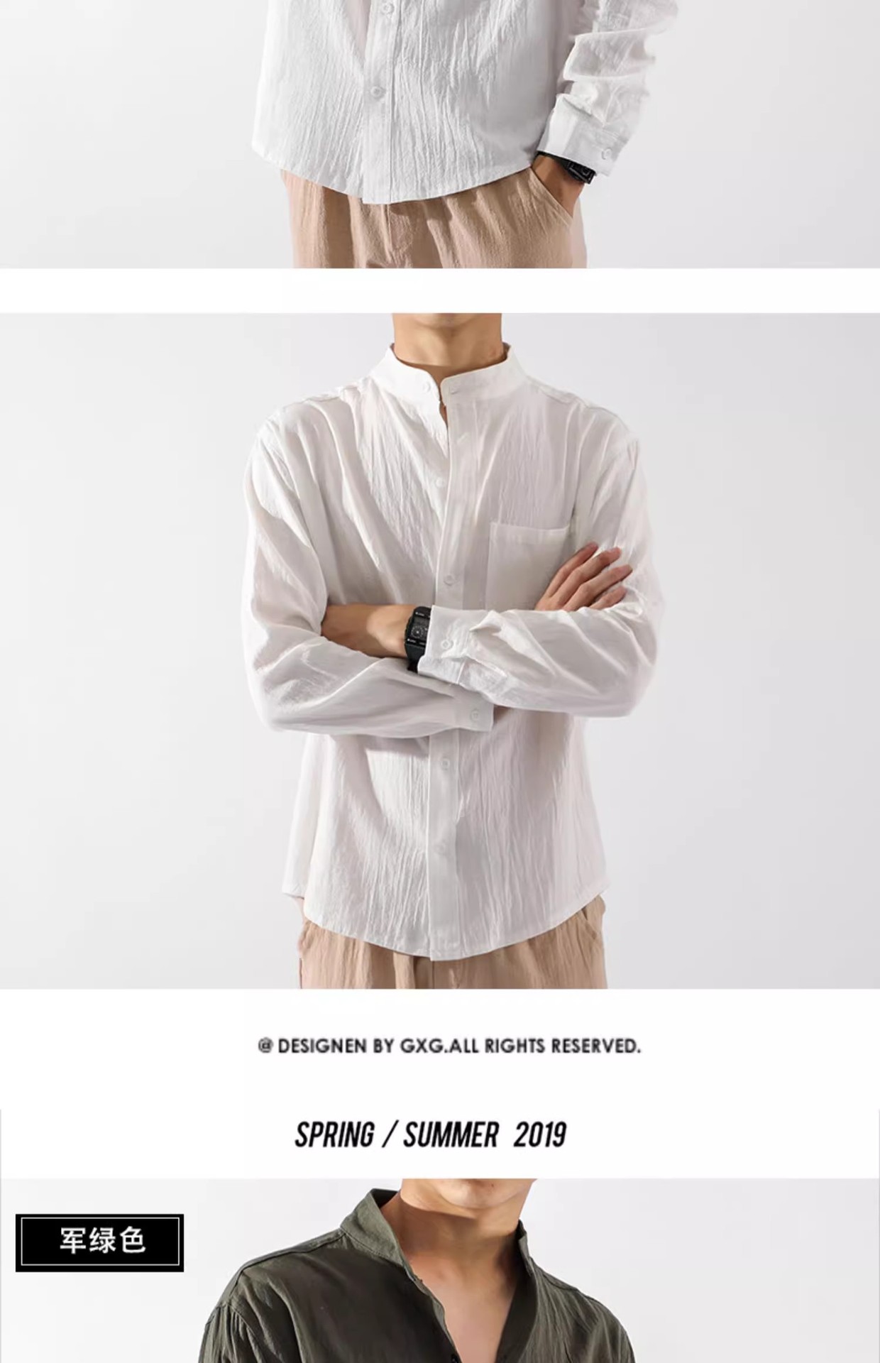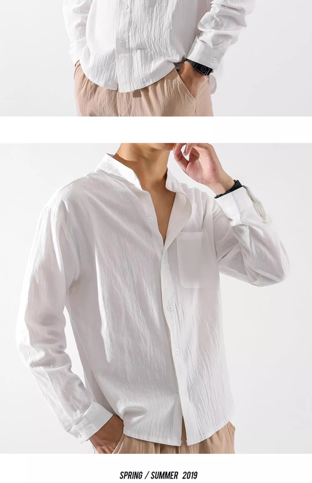 단색 긴 소매 셔츠 남자의 봄과 가을 얇은 캐주얼 셔츠 청소년 여름 느슨한 주름 셔츠 남성 자켓
