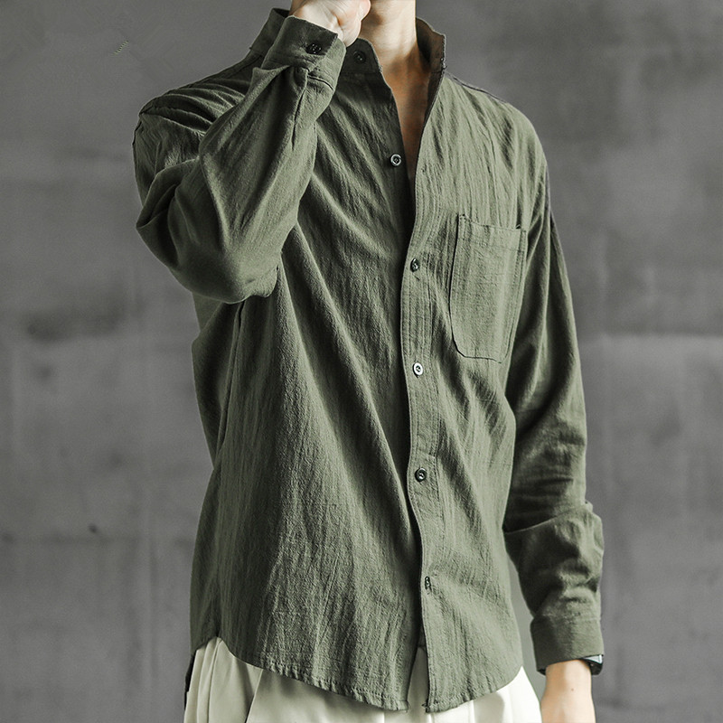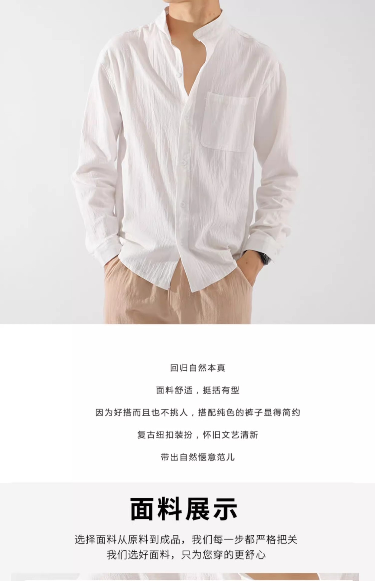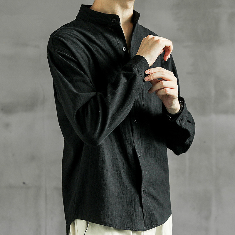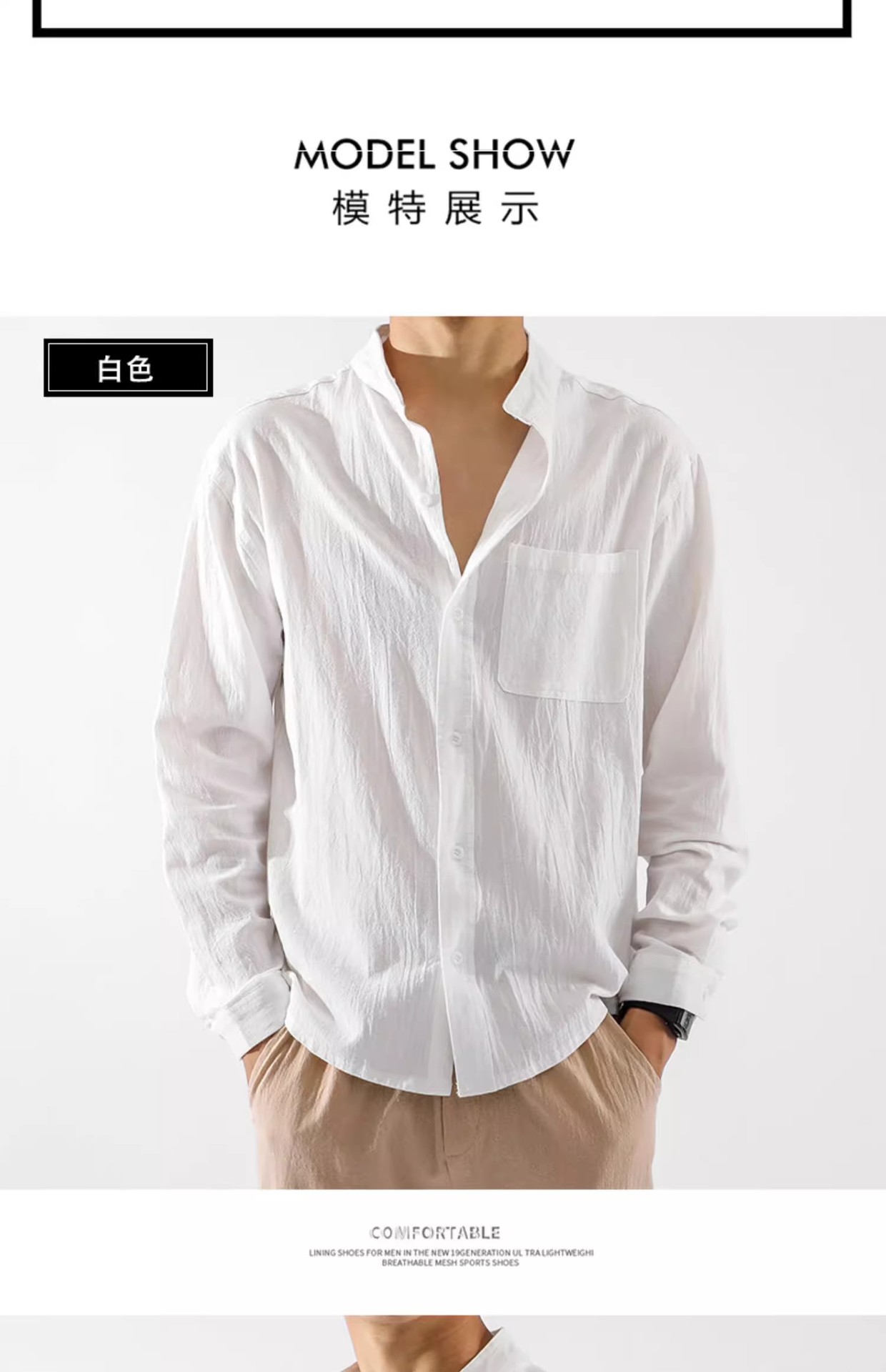 단색 긴 소매 셔츠 남자의 봄과 가을 얇은 캐주얼 셔츠 청소년 여름 느슨한 주름 셔츠 남성 자켓스토어 가기