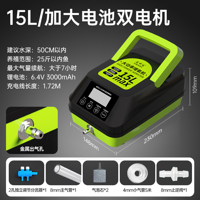 공장 소스 큰 흐름 산소 펌프 물고기 양식 가정용 야외 휴대용 충전 이중 목적 고출력 통풍기스토어 가기