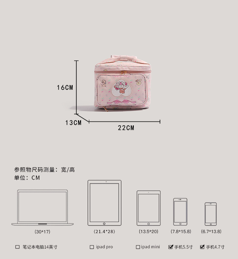 미코 공동브랜드 대형 만화 화장품 가방 소녀용 대용량 수납 가방 여행용 핸드백 휴대용스토어 가기