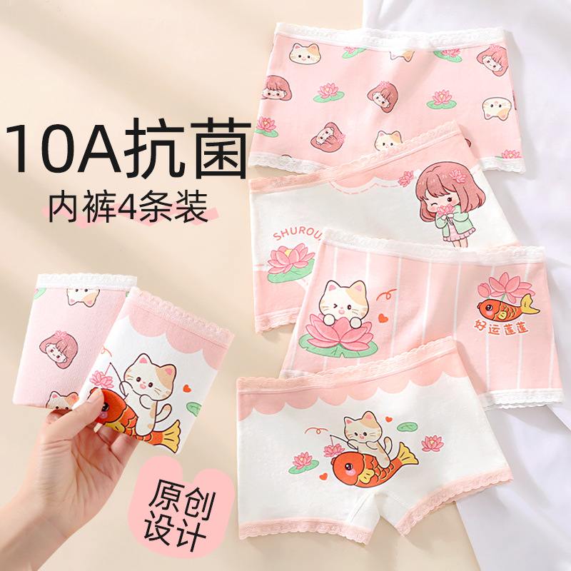 여아용 사각팬티 A급 순면 아동용 여아 사각팬티 10A 항균 통기성 여아용 만화 사각팬티