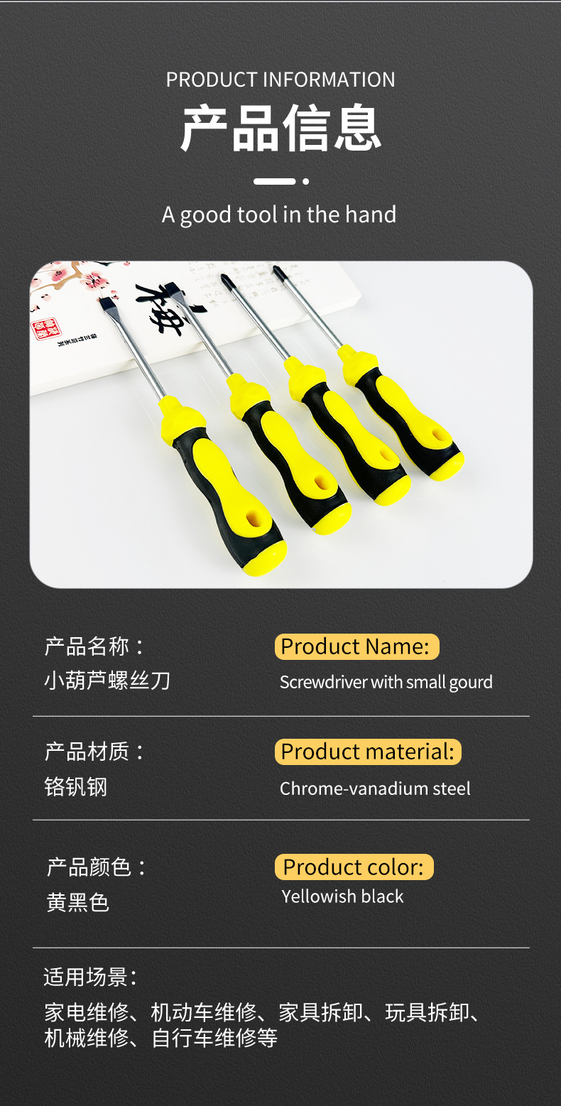 공장 도매 작은 조롱박 드라이버 땅콩 핸들 노란색 조롱박 드라이버 3 인치 작은 드라이버 도매