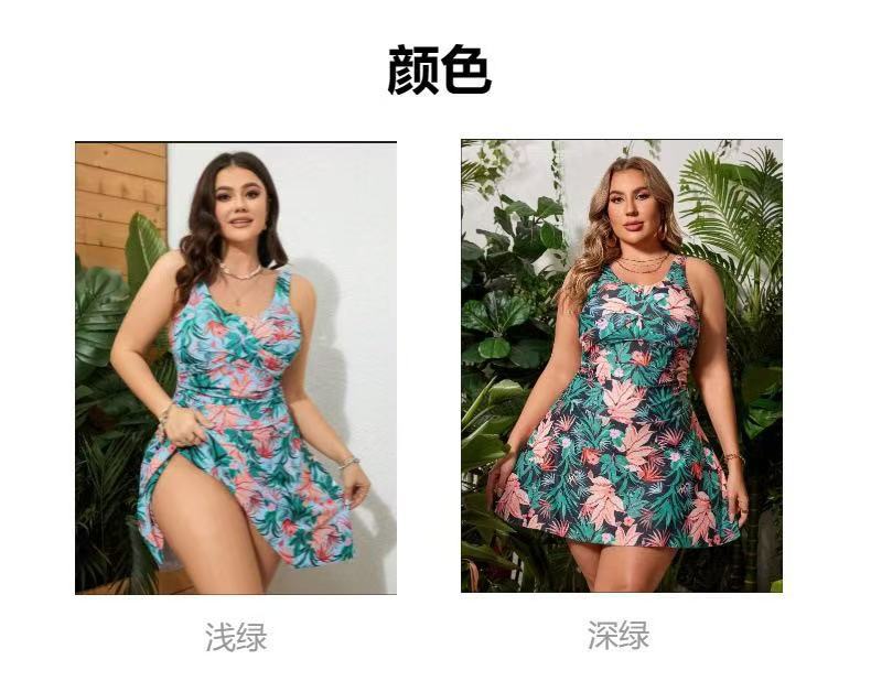 2024 년 새로운 유럽과 미국의 대외 무역 인쇄 여성 원피스 스커트 보수적 인 복고풍 수영복 백리스 고기로 덮인 수영복스토어 가기
