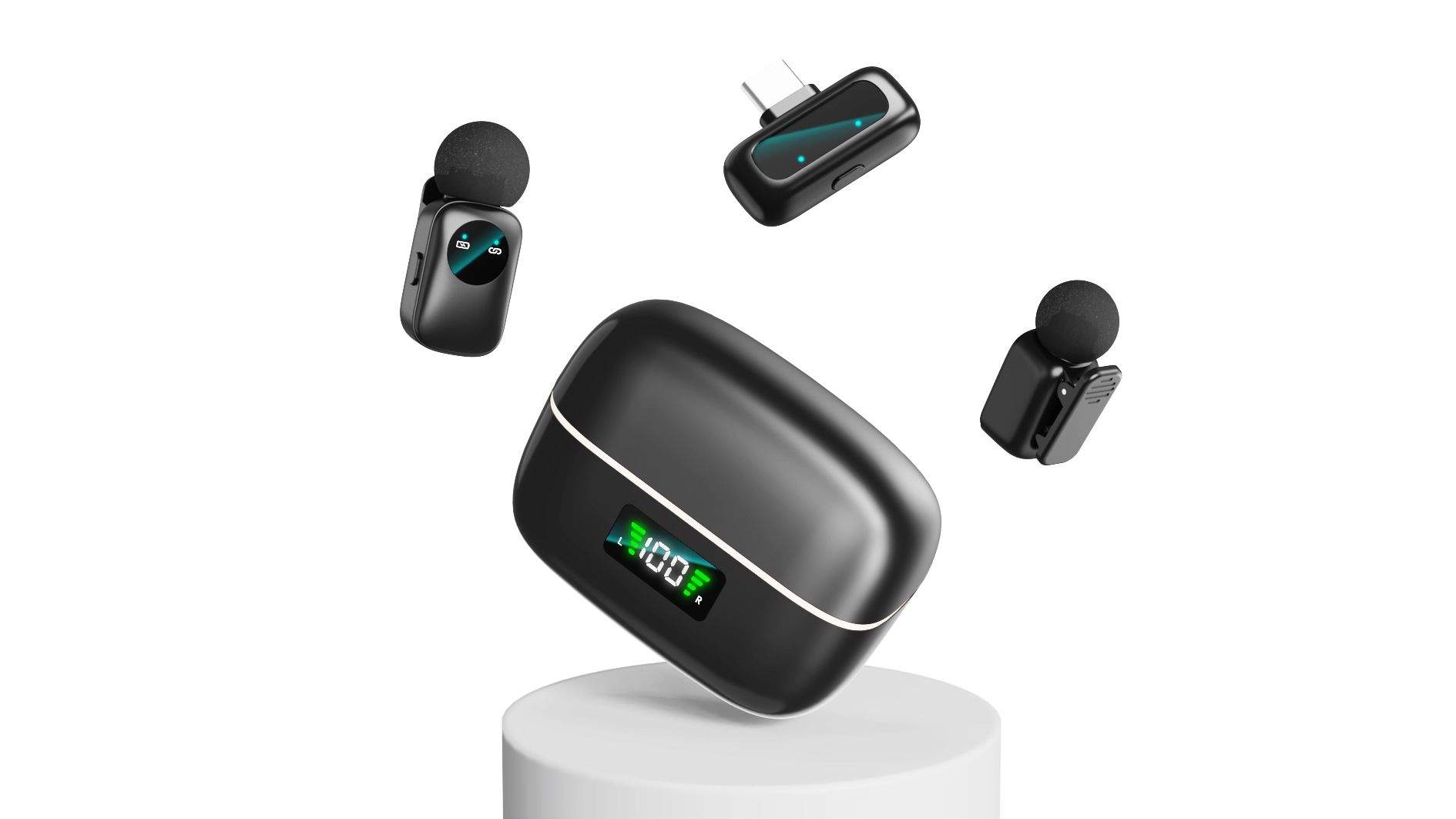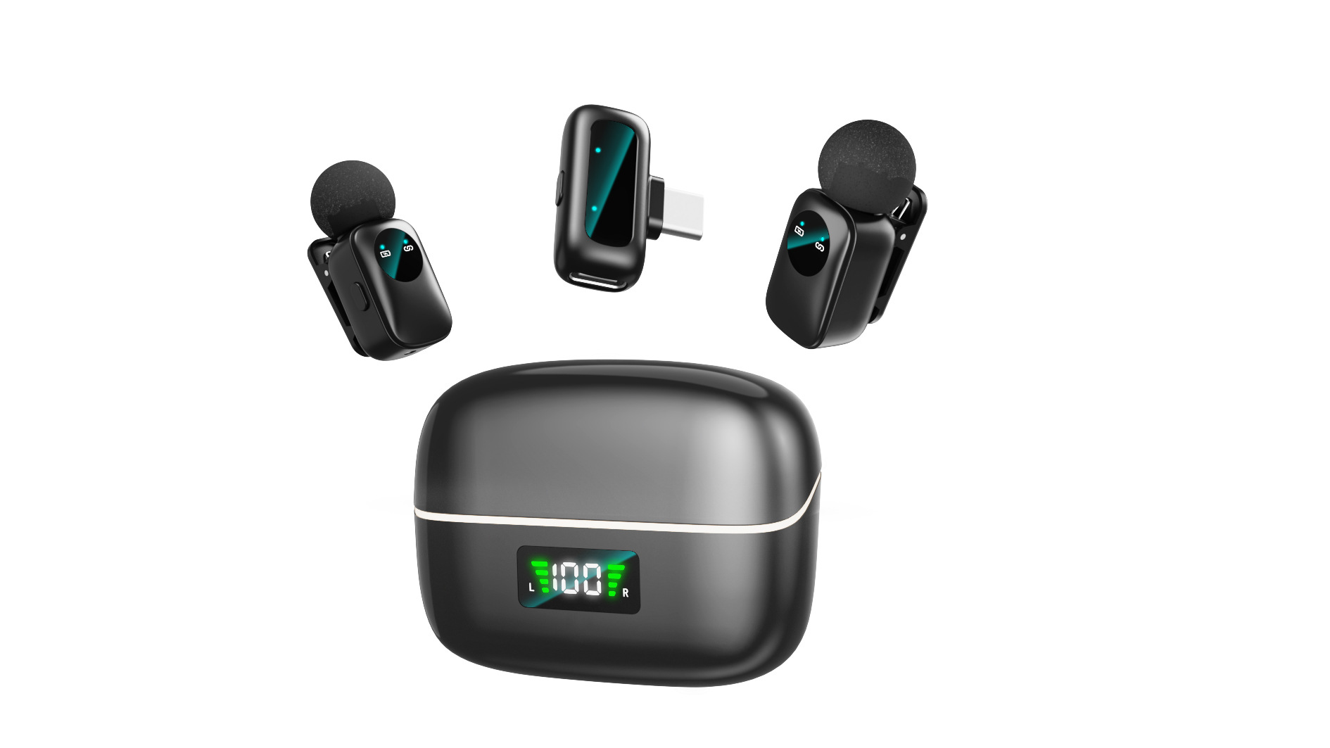 공장 직판 신제품 올인원 미니 클립형 마이크 휴대폰 라이브 방송 녹음 소음 감소 1:2 수신 장치