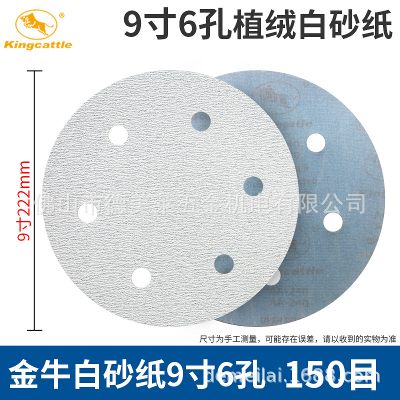 토러스 무리 흰 모래 9 인치 6 홀 디스크 마른 모래 벽 퍼티 건조 연마 종이 자체 접착 브러시 시트 연삭 기계스토어 가기