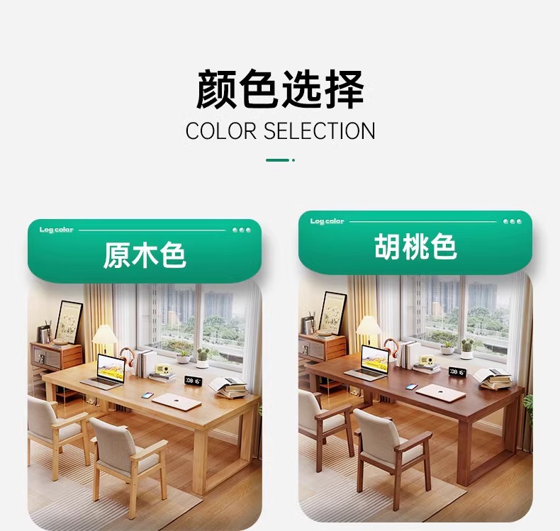 • [단단한 나무-4CM 두꺼운 데스크탑] 나무 색상 + 등받이 의자*2