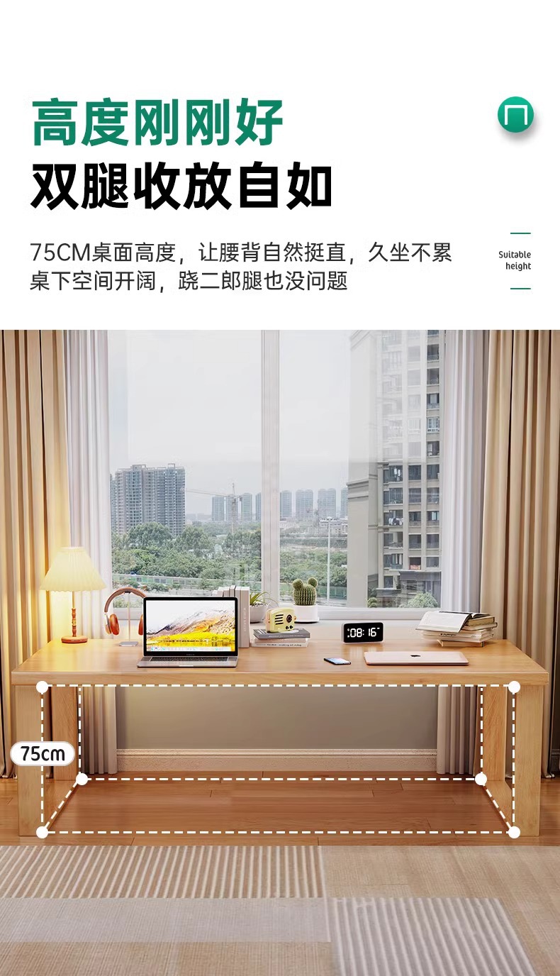 • [단단한 나무-4CM 두꺼운 데스크탑] 나무 색상 + 등받이 의자*1