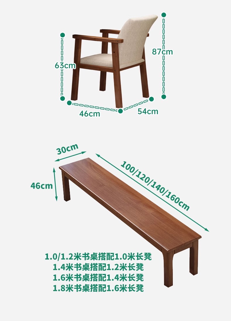 • [단단한 나무-4CM 두께의 데스크탑] 호두 색상 + 등받이 의자 * 1 + 벤치
