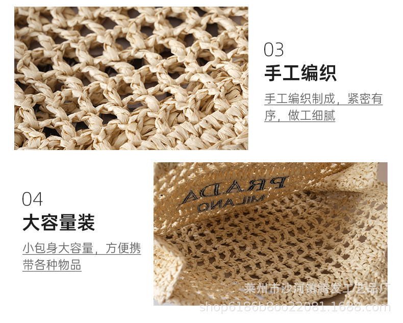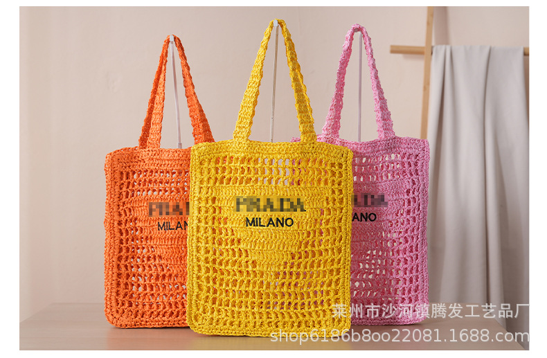 여름 밀짚 가방 대용량 토트 백 할로우 짠 여성용 가방 휴대용 어깨 가방 해변 휴가 가방