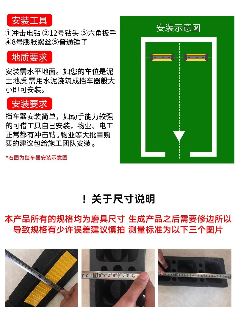 주차 공간 자동차 스토퍼 스토퍼 자동차 스토퍼 주차 공간 지상 블록 고무 로케이터 자동차 휠 자동차 블록 주차 더미스토어 가기