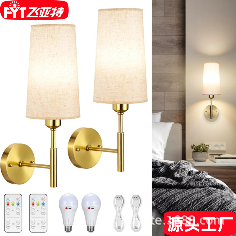 국경 간 미국식 배선이 필요없는 침실 머리맡 램프 거실 장식 캔버스 커버 골드 무선 충전 디 밍이 가능한 벽 램프