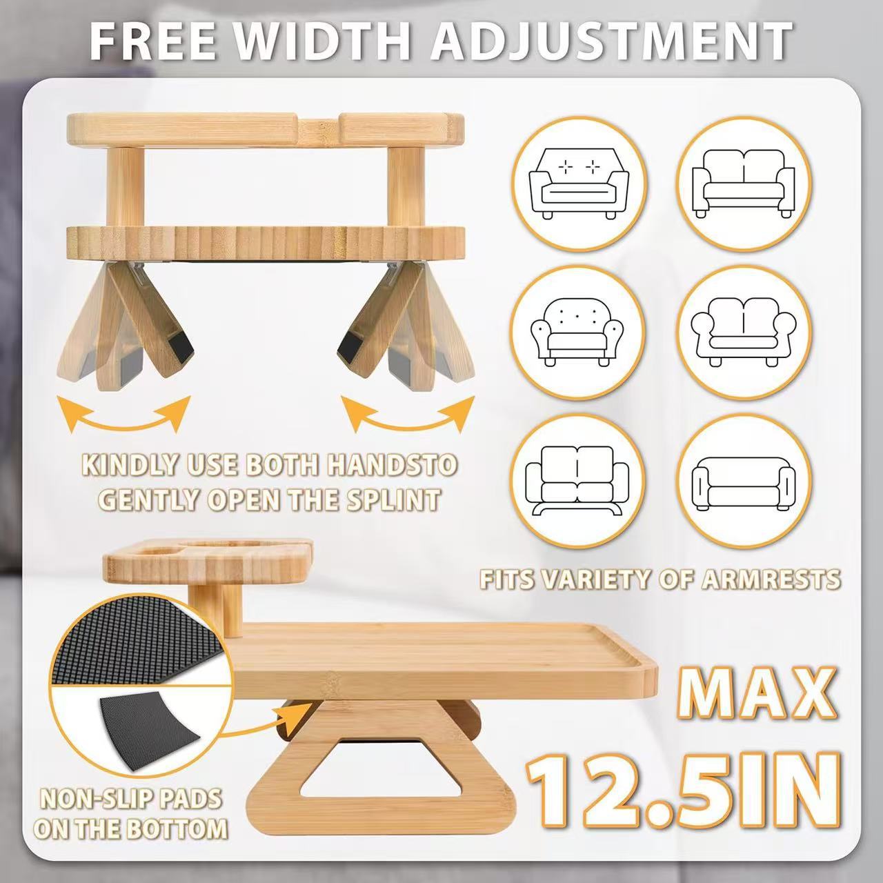 나무 트레이, 이중층, 손으로 칠할 수 있는 팔걸이 트레이, 컵 홀더, 음료 및 스낵 보관 트레이, 원목 소파 테이블스토어 가기