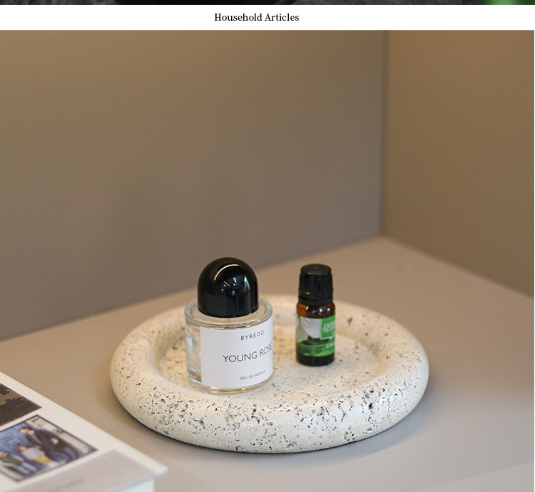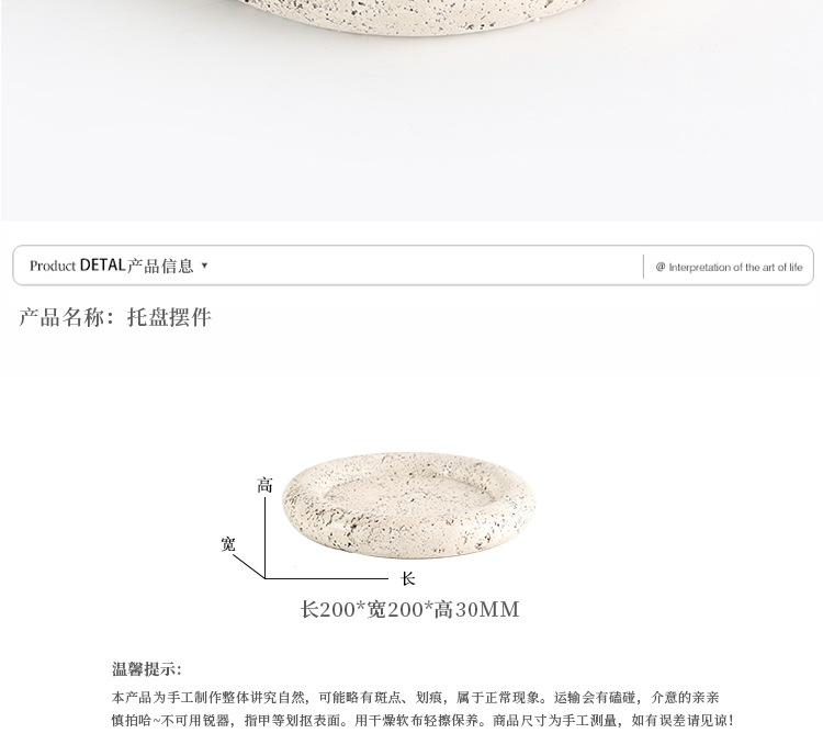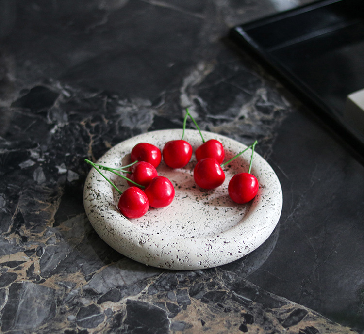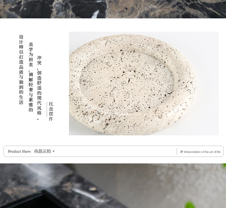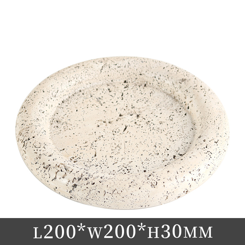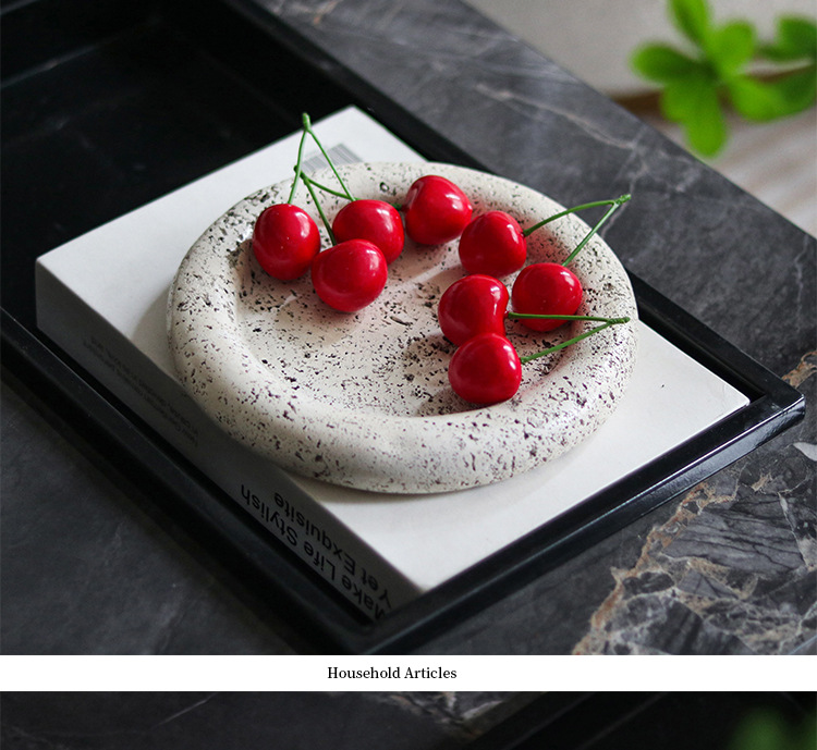 모조 노란색 동굴 돌 라운드 과일 트레이 장식품 모델 룸 호텔 거실 주방 욕실 간단한 저장 트레이 장식품