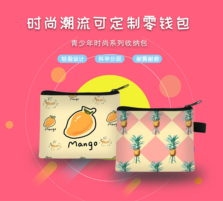 과일 시리즈 만화 동전 지갑 어린이 패션 카드 가방 초등학생 남성과 여성의 귀여운 저장 가방 국경 도매 핫스토어 가기