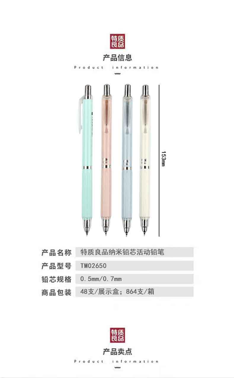 Tianzhuo 02650 기계 연필 나노 리드 코어 학생 0.5/0.7mm 높은 색상 값 액티브 연필스토어 가기