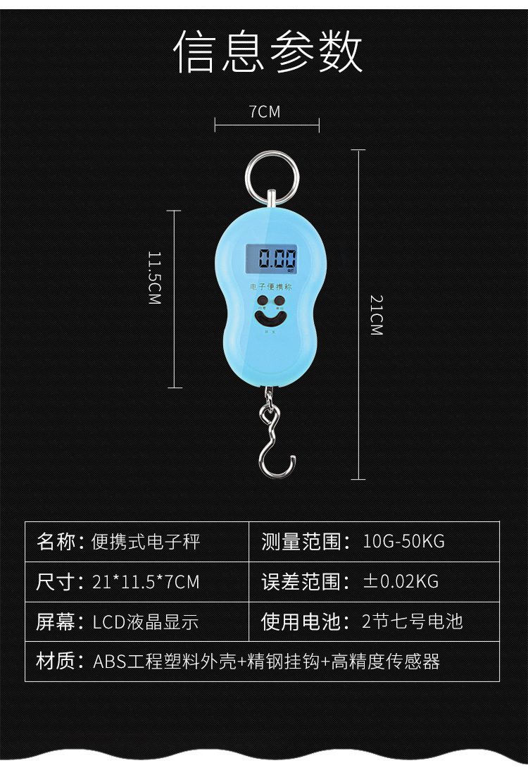 50kg 백라이트 호이스트 휴대용 스케일 휴대용 홈 전자 스케일 익스프레스 소포 후크 무게 규모