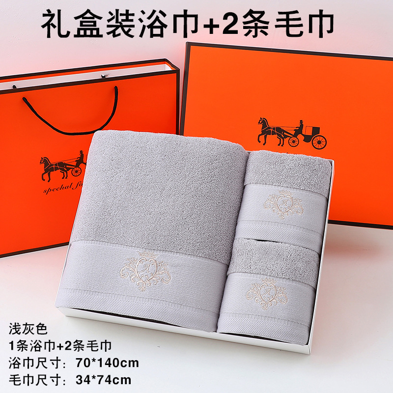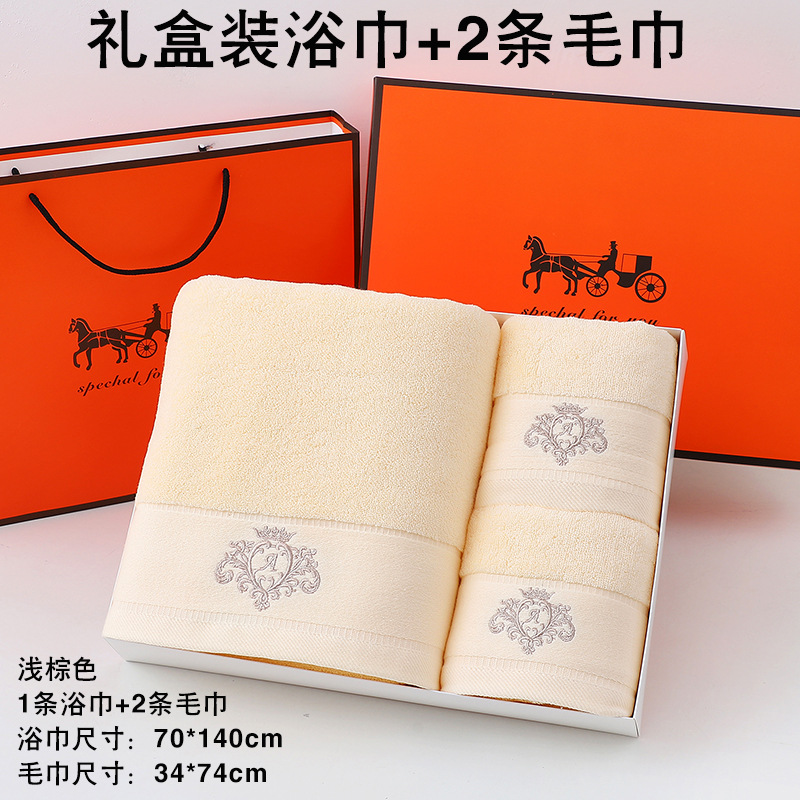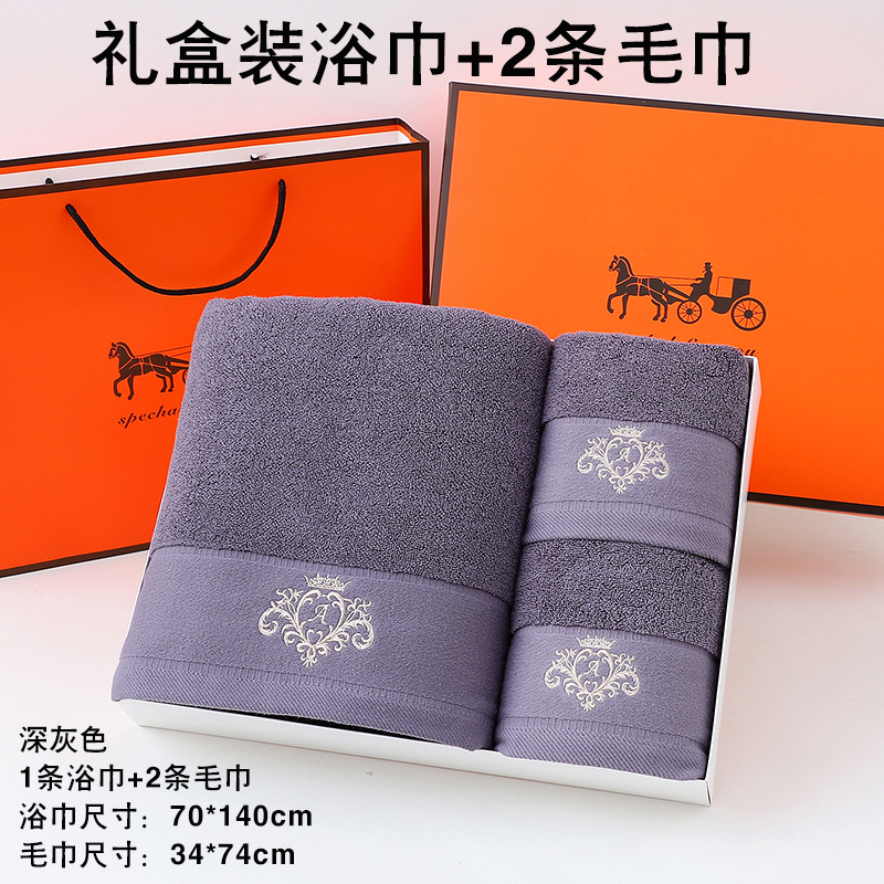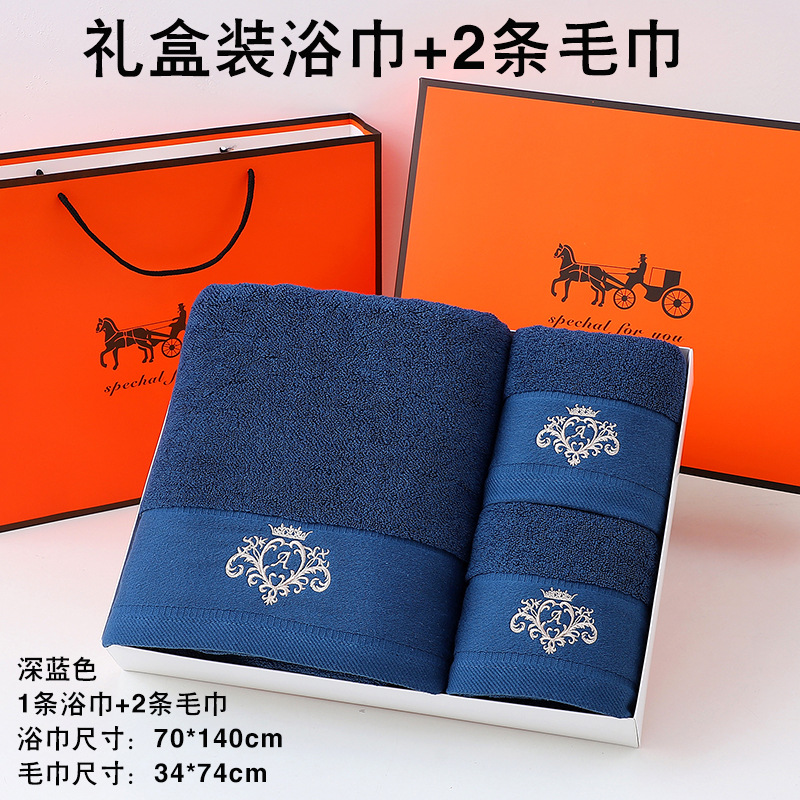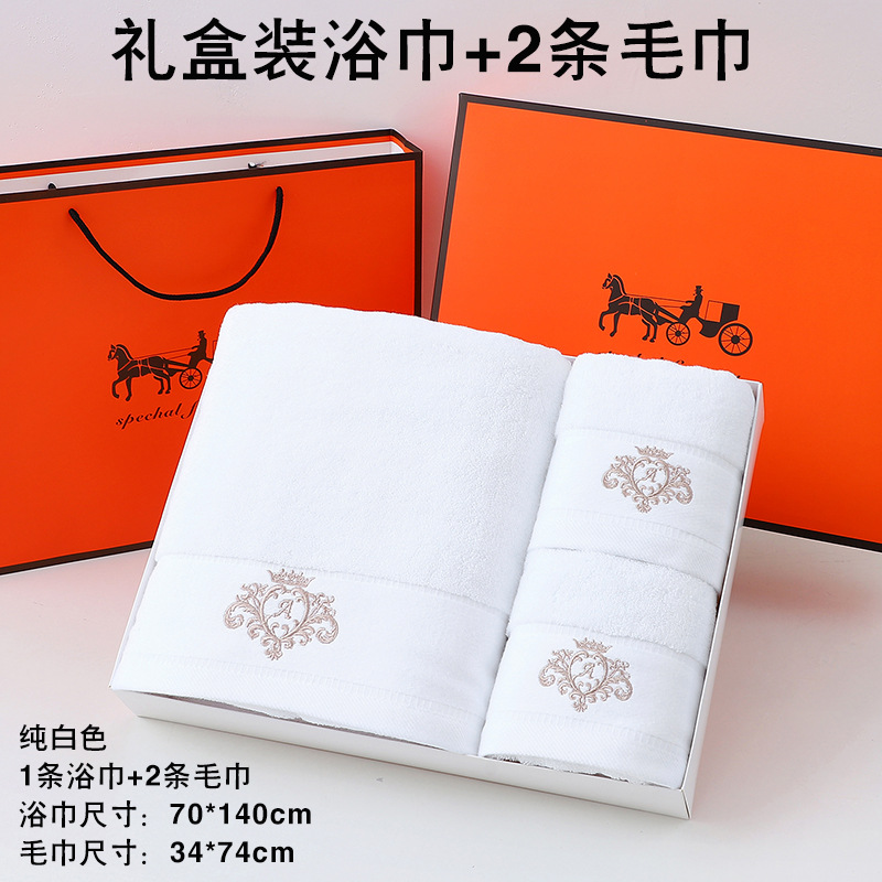 고급면 목욕 수건 수건 선물 상자 세 조각 세트 손 선물 결혼 선물 회사 복지 자수 로고