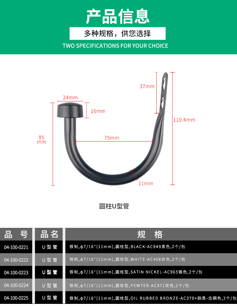 • 7/16(11mm)-AC949 검정색-원통형 U