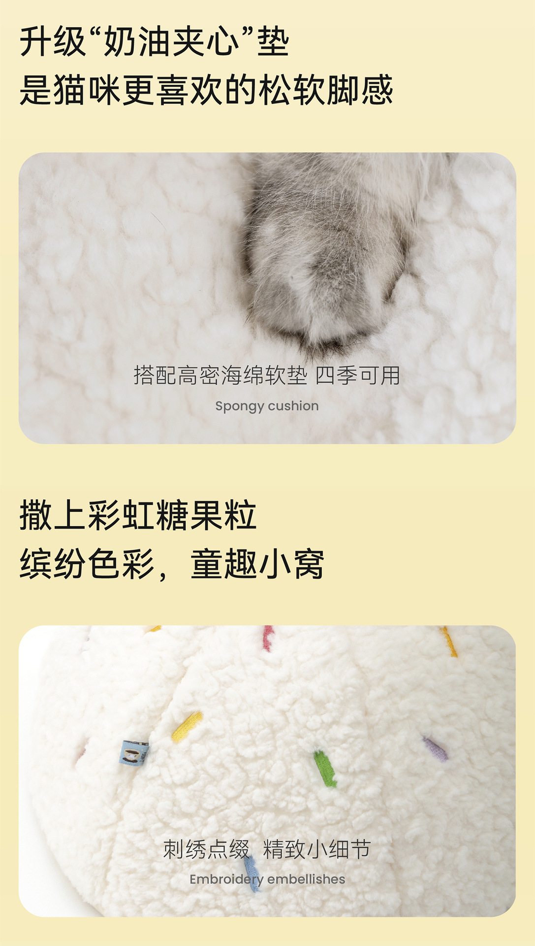 Fu Wan Mafen 케이크 고양이 둥지 겨울 따뜻한 귀여운 펠트 폐쇄 보안 애완 동물 고양이 모든 계절 유니버설