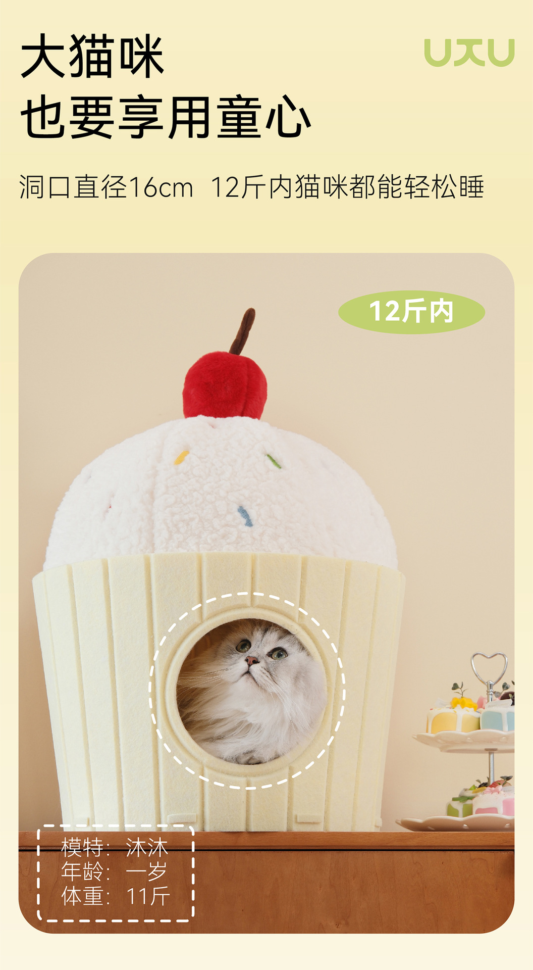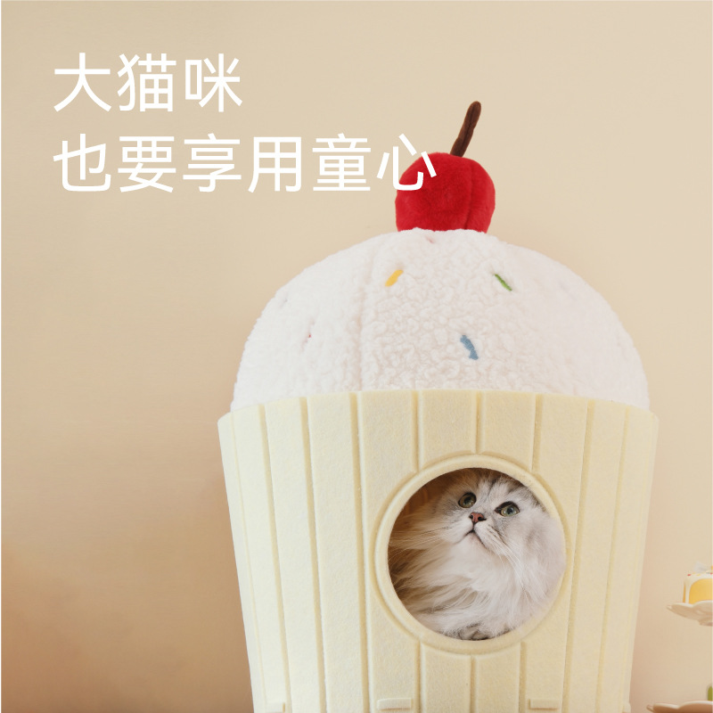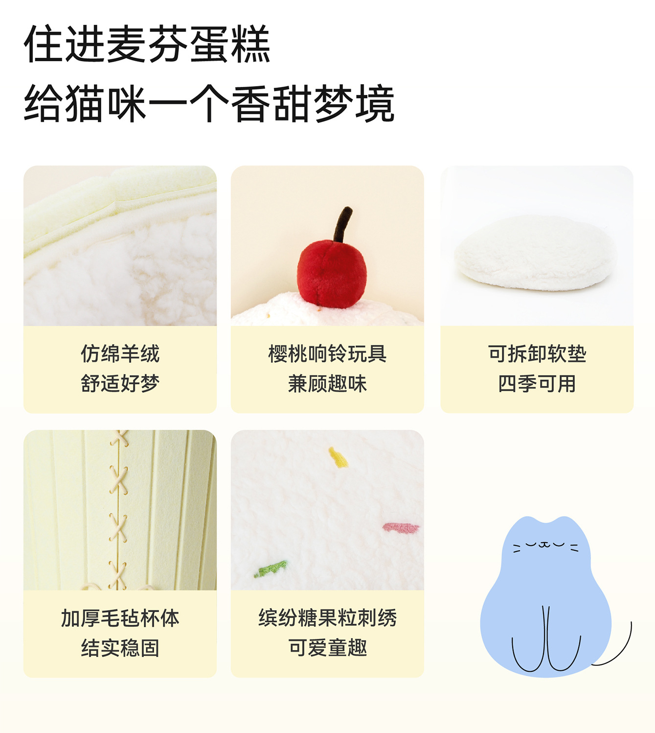 Fu Wan Mafen 케이크 고양이 둥지 겨울 따뜻한 귀여운 펠트 폐쇄 보안 애완 동물 고양이 모든 계절 유니버설스토어 가기